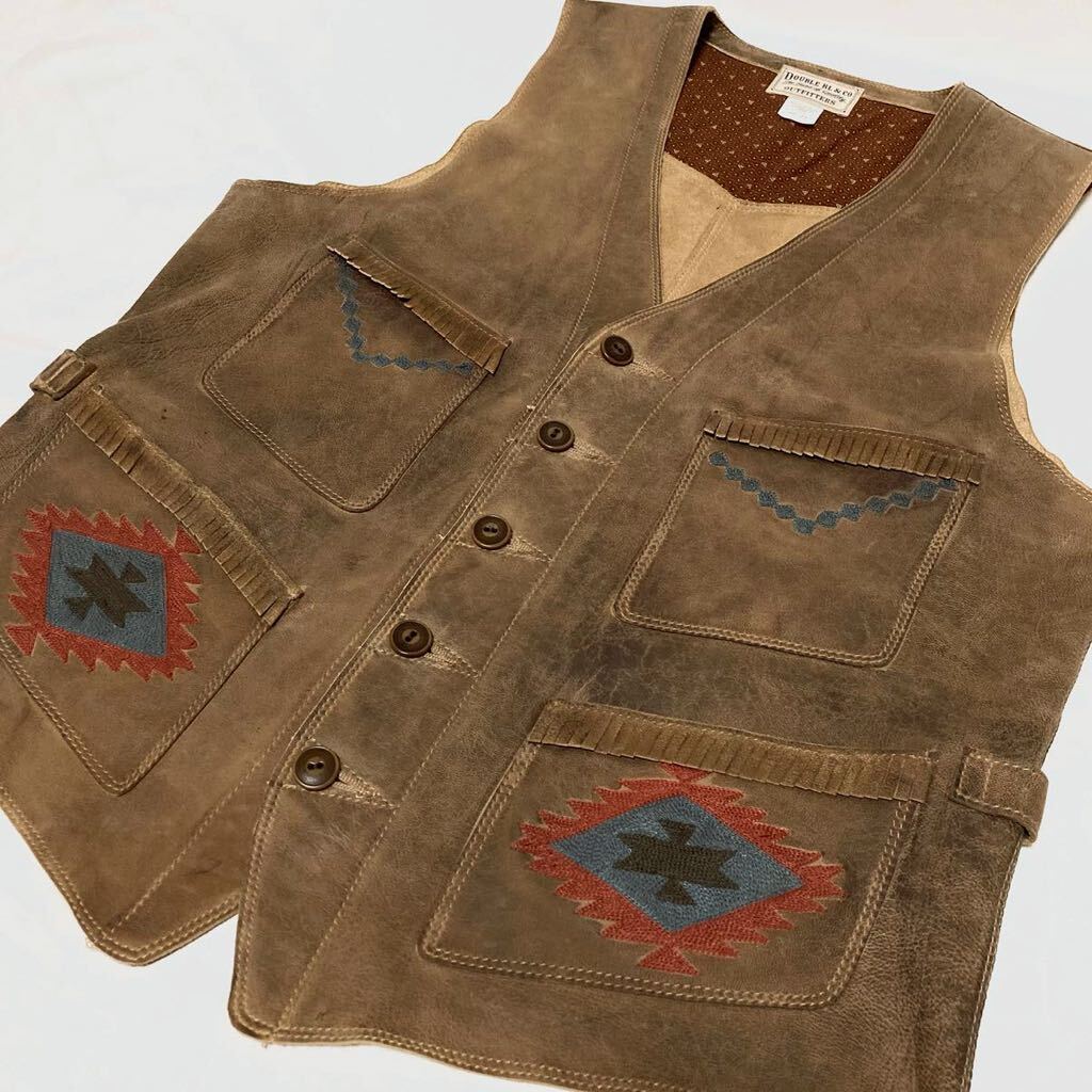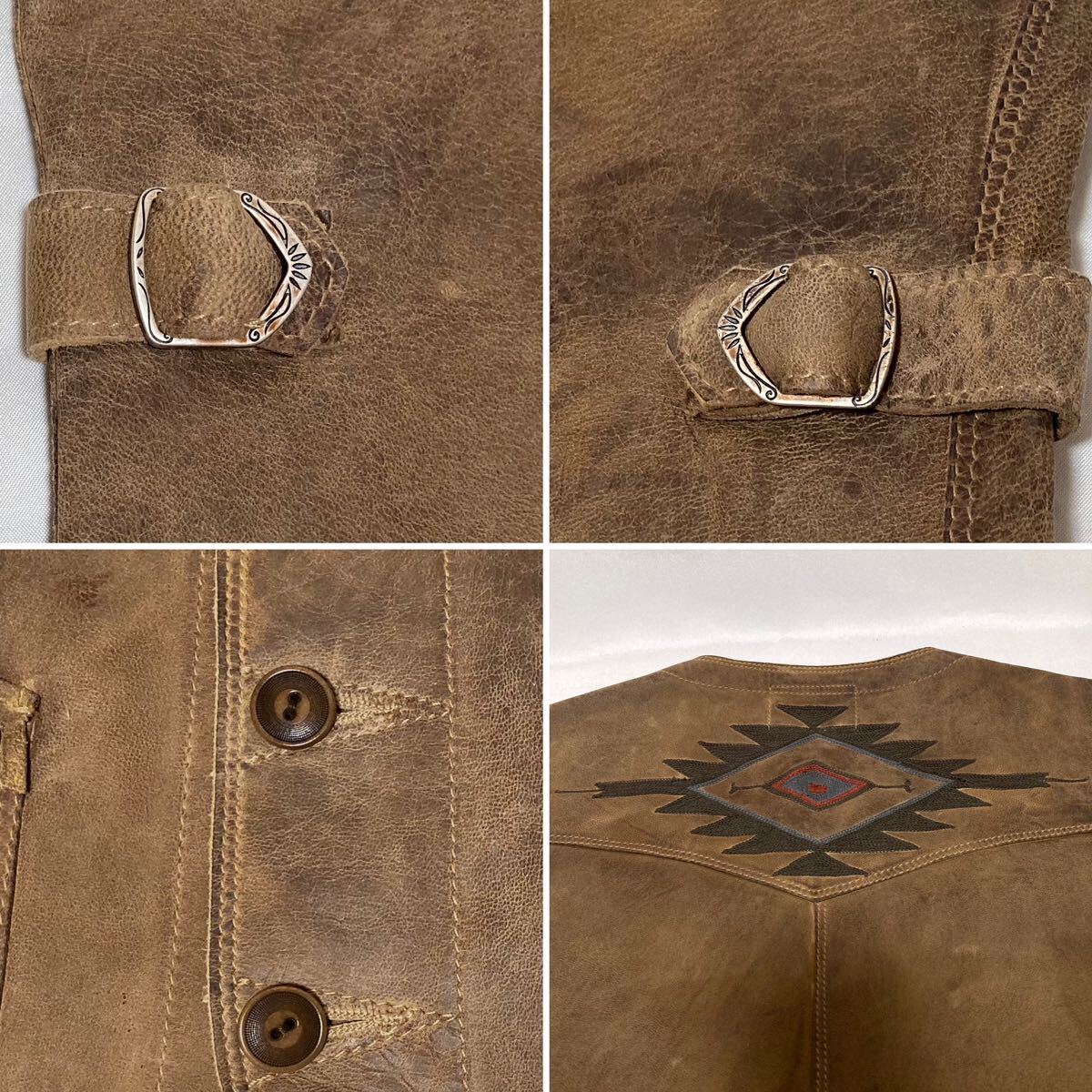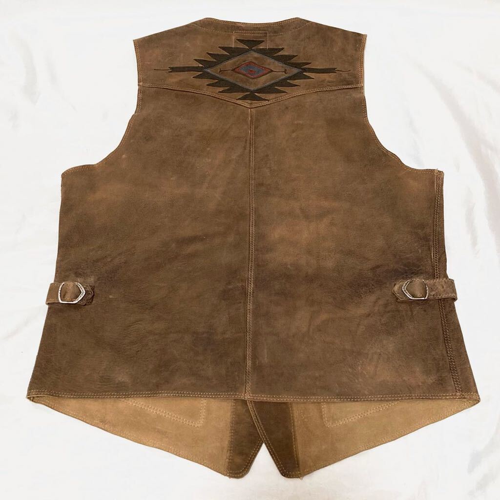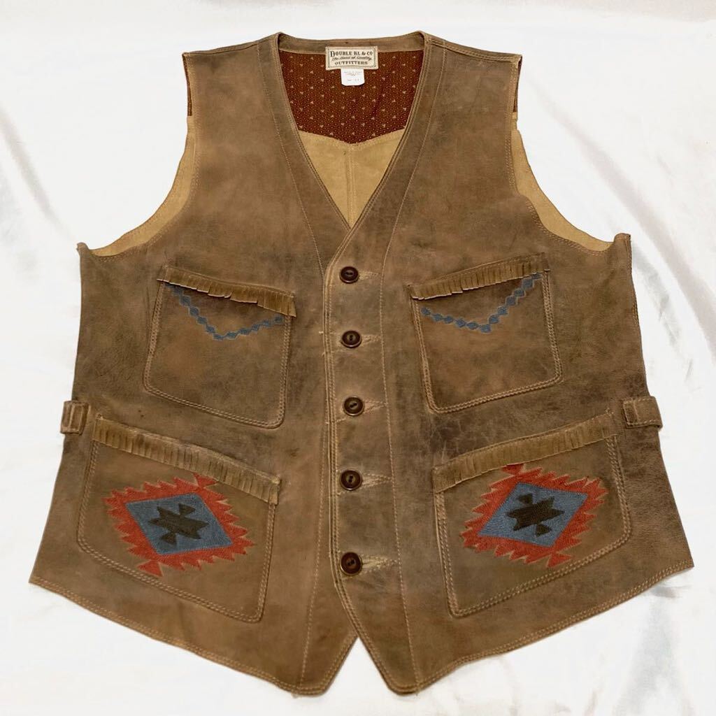 RRL DOUBLE RL ダブルアールエル ハンドエンブロイダード シープスキン レザー ベスト S vintage加工 刺繍 ralphlauren ラルフローレンです。