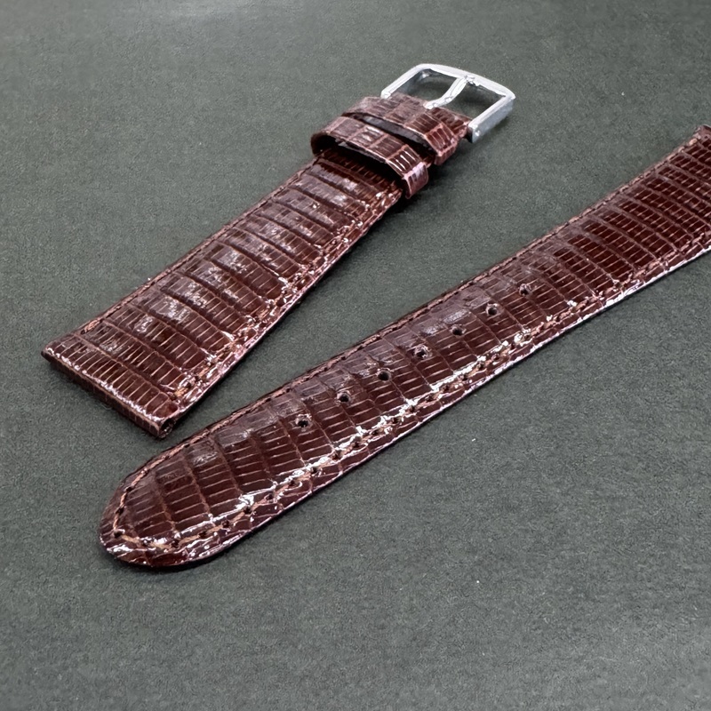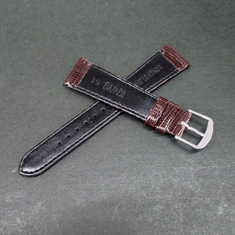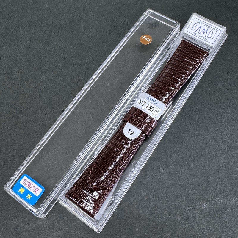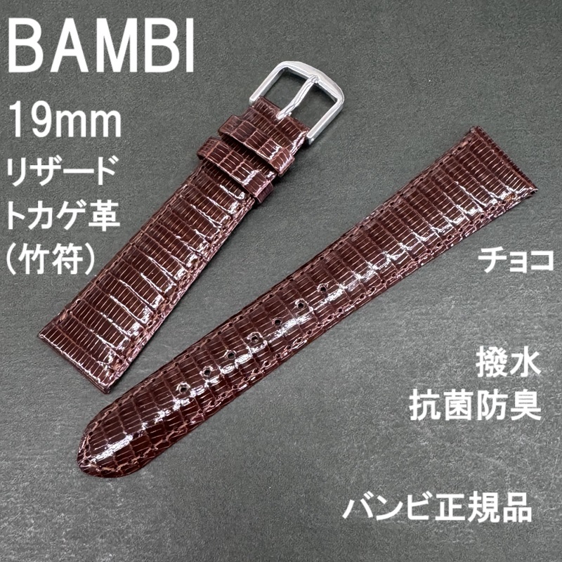 送料無料 バネ棒★特価 新品★BAMBI 時計ベルト リザード トカゲ革 19mm 抗菌防臭 撥水 チョコ色 こげ茶 竹符★バンビ正規品 定価7,150円