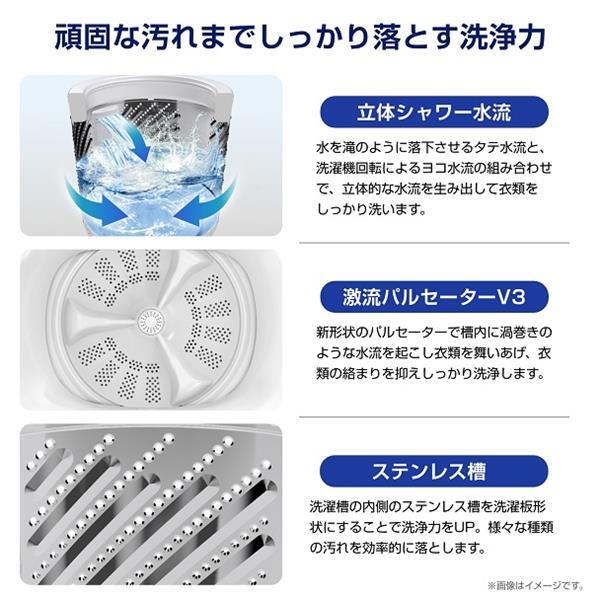 立体シャワー水流に激流パルセーター V3、更に独自の凹凸形状で設計されている丈夫なステンレス槽で、しっかりと汚れを落とします。