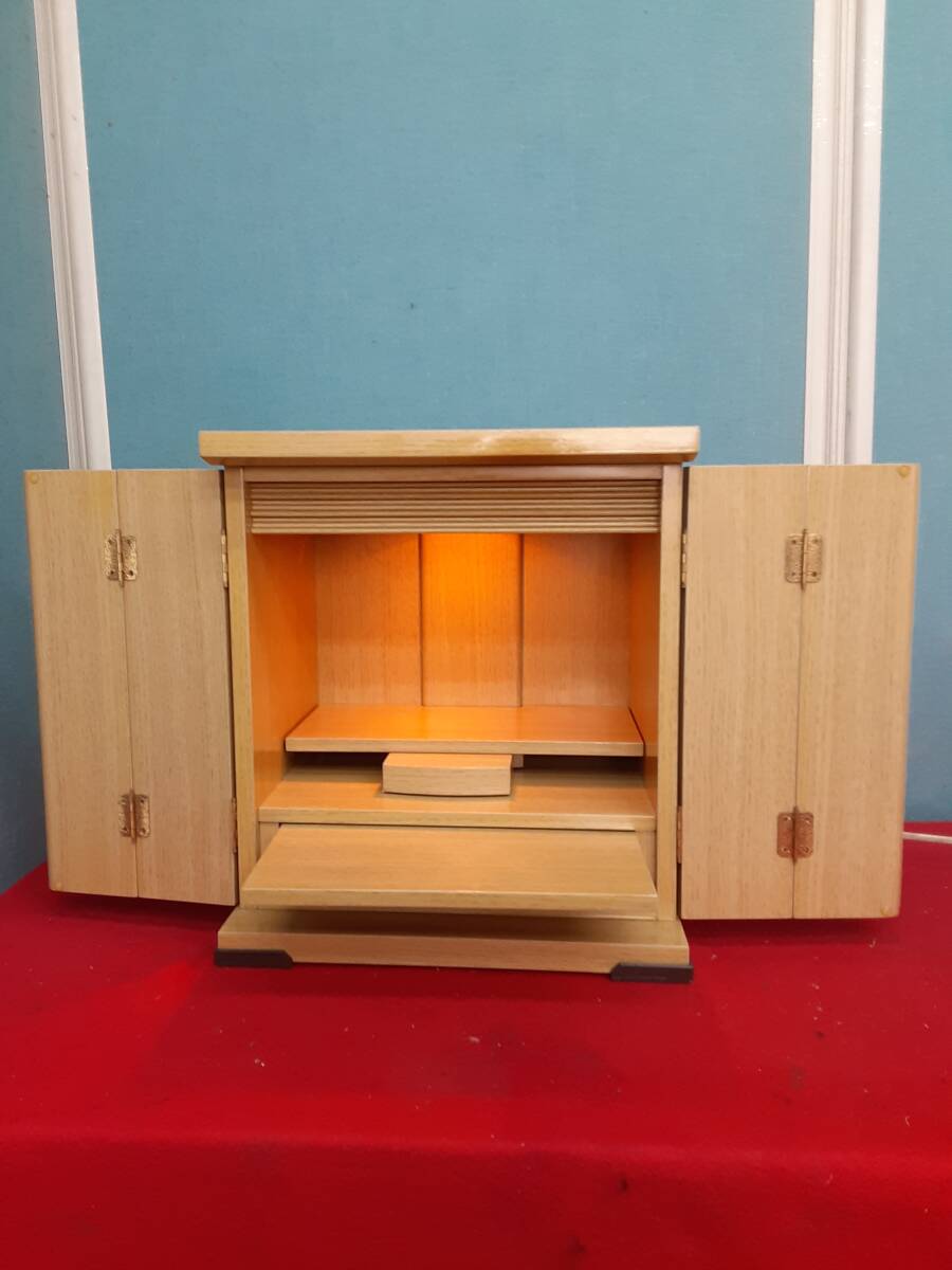 | 商品説明 | ■国産 家具調仏壇 モダン仏壇 リビング仏壇 アポロ 14号 正面表面材・台輪タモ厚板貼り 正面表面材・戸板タモ厚板貼り 主芯材パーチクルボード、木質繊維板 扉芯材タモ無垢 表面仕上げウレタン仕上げ 原産国日本 ●外形サイズ 幅38x奥31x高さ43.5㎝ 内寸 幅34x奥26x高さ28㎝ 本尊棚 幅34x奥16x高さ24㎝ ●照明付き ■開封され保管されていたほぼ未使用の上置き仏壇となります。 小傷程度はあるかもしれませんが、目立った大きな傷や汚れもなく主観的に大変綺麗な状態だと思います。 不具合もありません。 ずっしり重いタモ無垢使用の高級タイプとなります。 出品は画像に写っているものが全てですので、不明な点はご質問頂き、動作不良(到着後5日)以外はノークレームでお願い致します。 | |