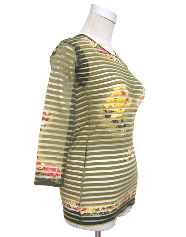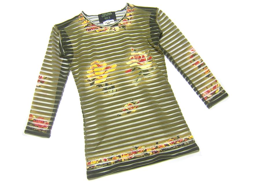 Jean Paul GAULTIER MAILLE FEMME のイタリア製、 花柄ボーダーパワーネットカットソーでございます。 伸縮性あり/透け感あり/七部袖 | |