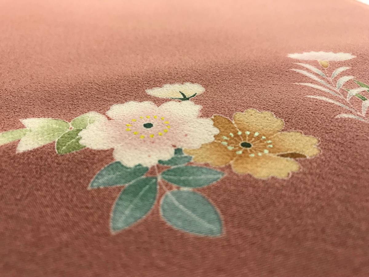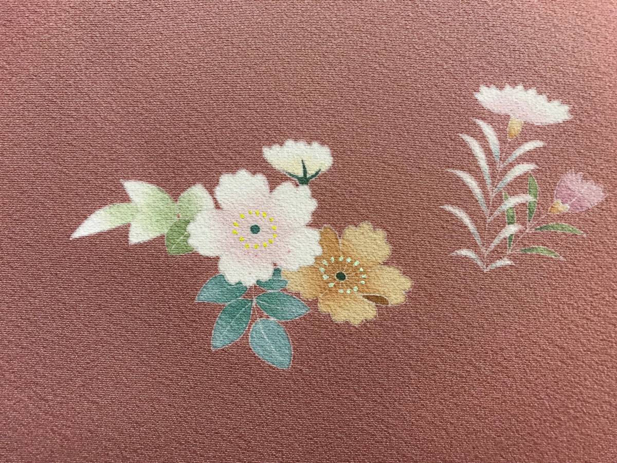 付け下げ 1-1142 十日町友禅 花文字柄 金駒刺繍 浜ちりめん 反物 未仕立て