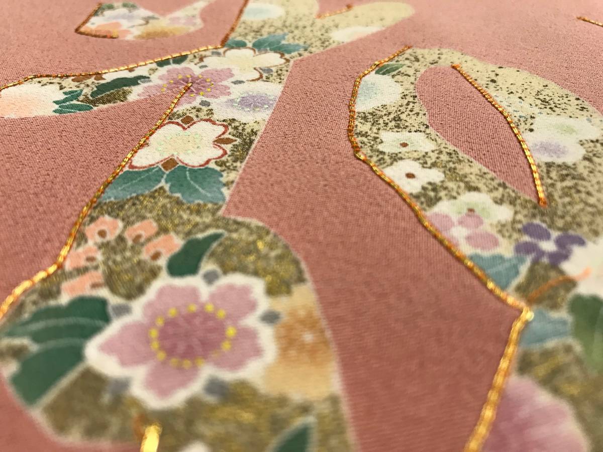付け下げ 1-1142 十日町友禅 花文字柄 金駒刺繍 浜ちりめん