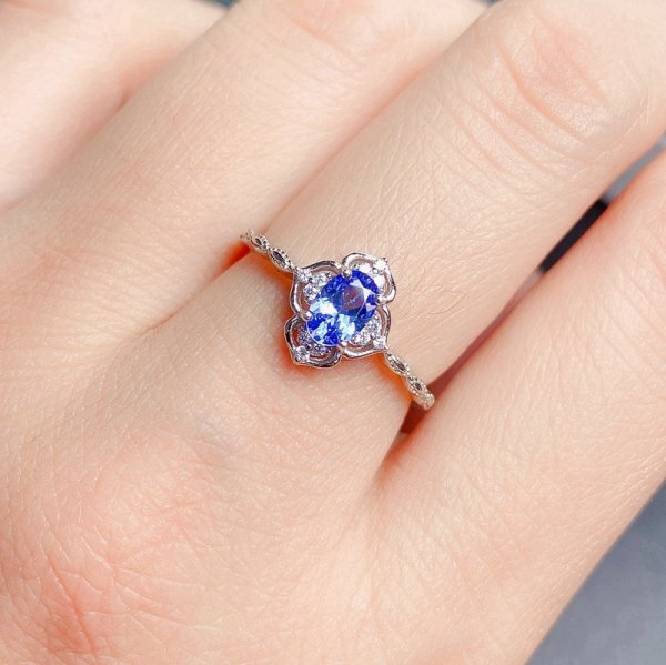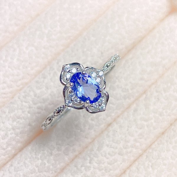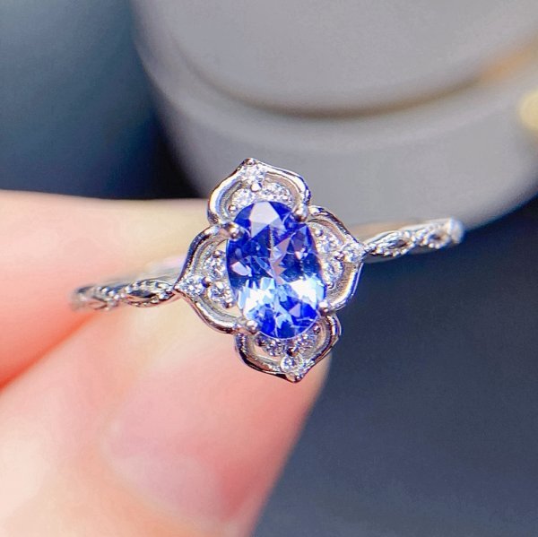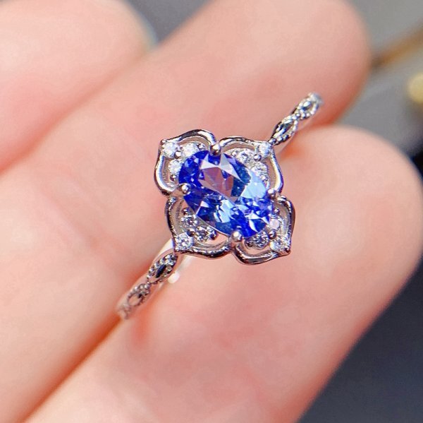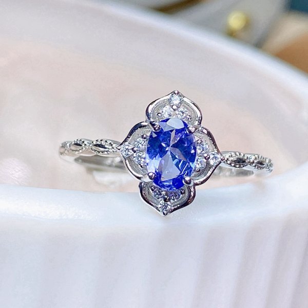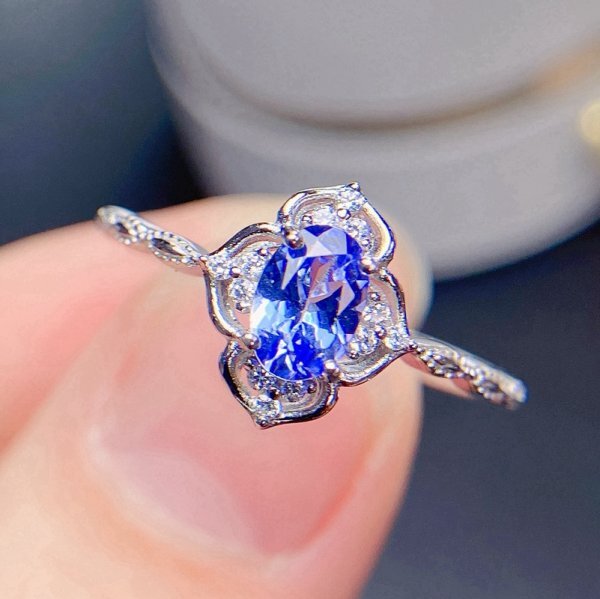 女性用天然タンザナイトリング、4*6mm、925スターリングシルバー