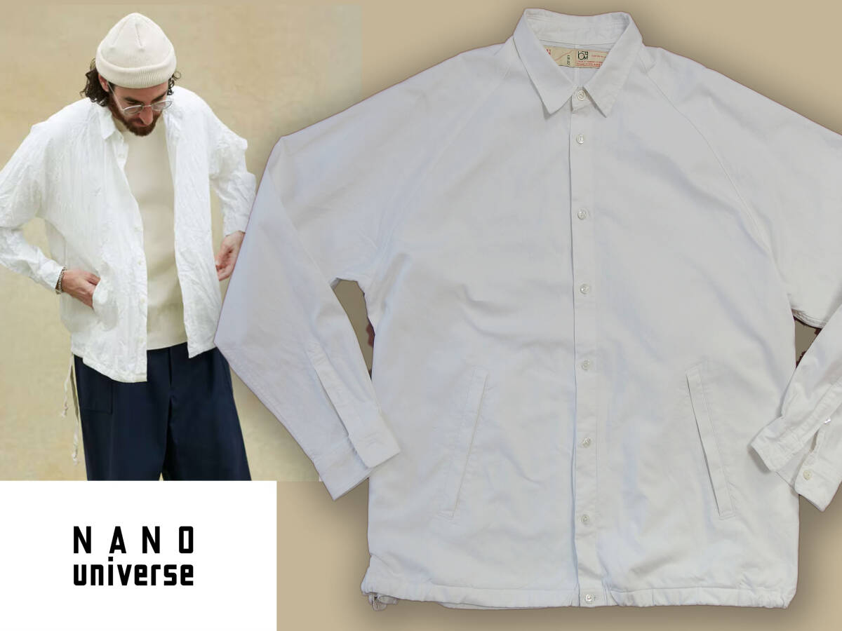 定価2.3万 ナノ・ユニバース LB.02 リネン混 クリンクルコーチシャツ ホワイト L