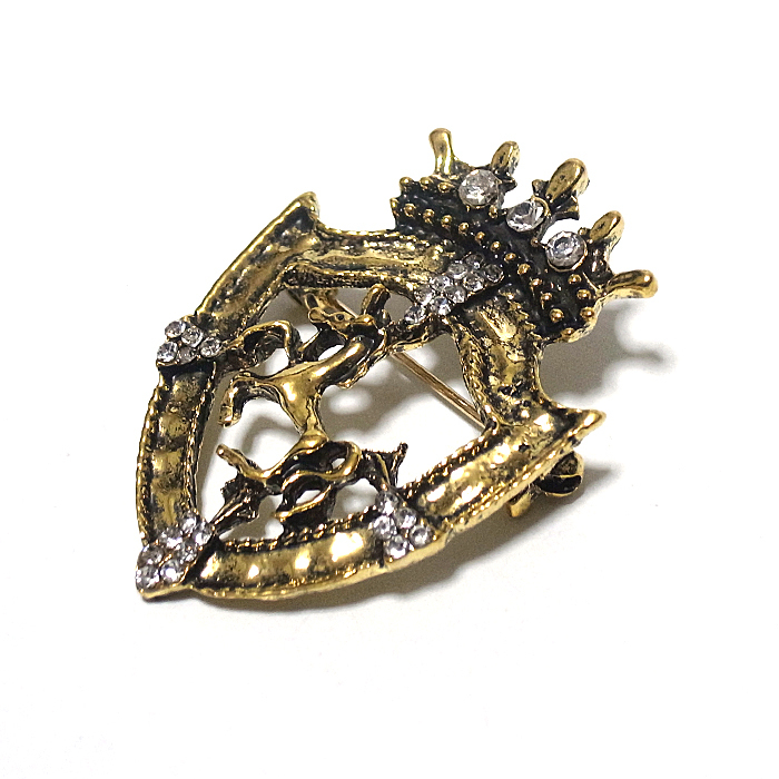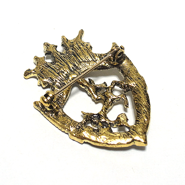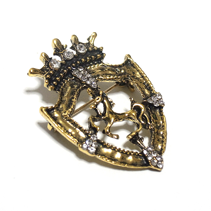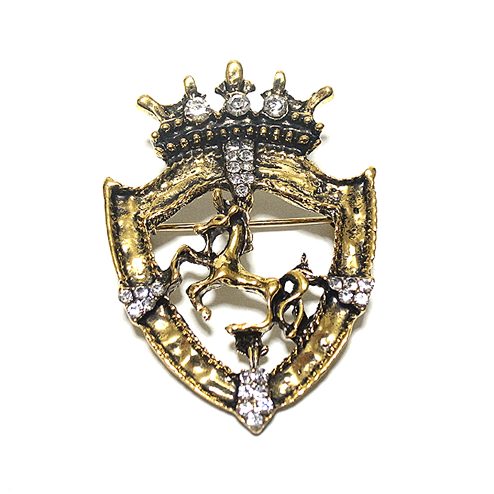 ラペルピン★ブローチ 馬 紋章 王冠 盾 ホース クラウン シールド  エンブレム ゴールド pin-0748
