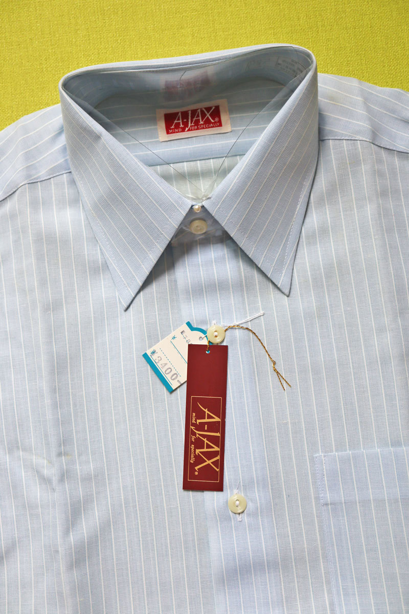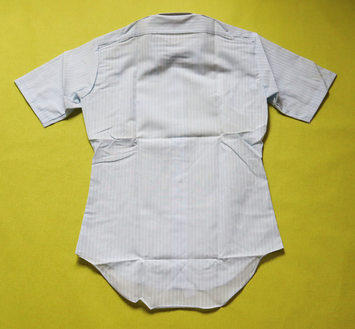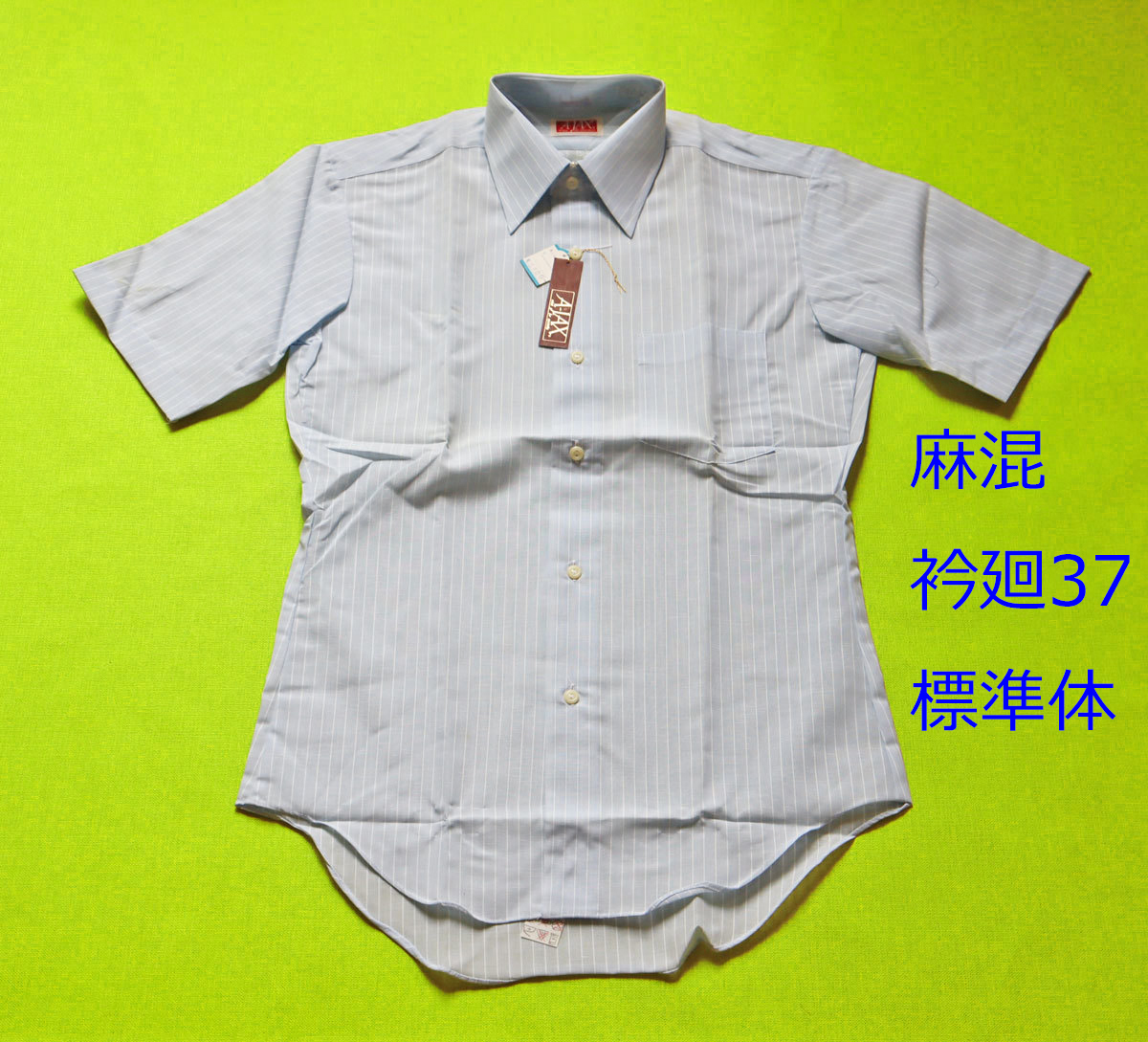 rm1315  メンズ 半袖Yシャツ 夏 半袖シャツ ストライプ ブルー 37 日本製 麻混 新古品 長期保管品 メンズファッション