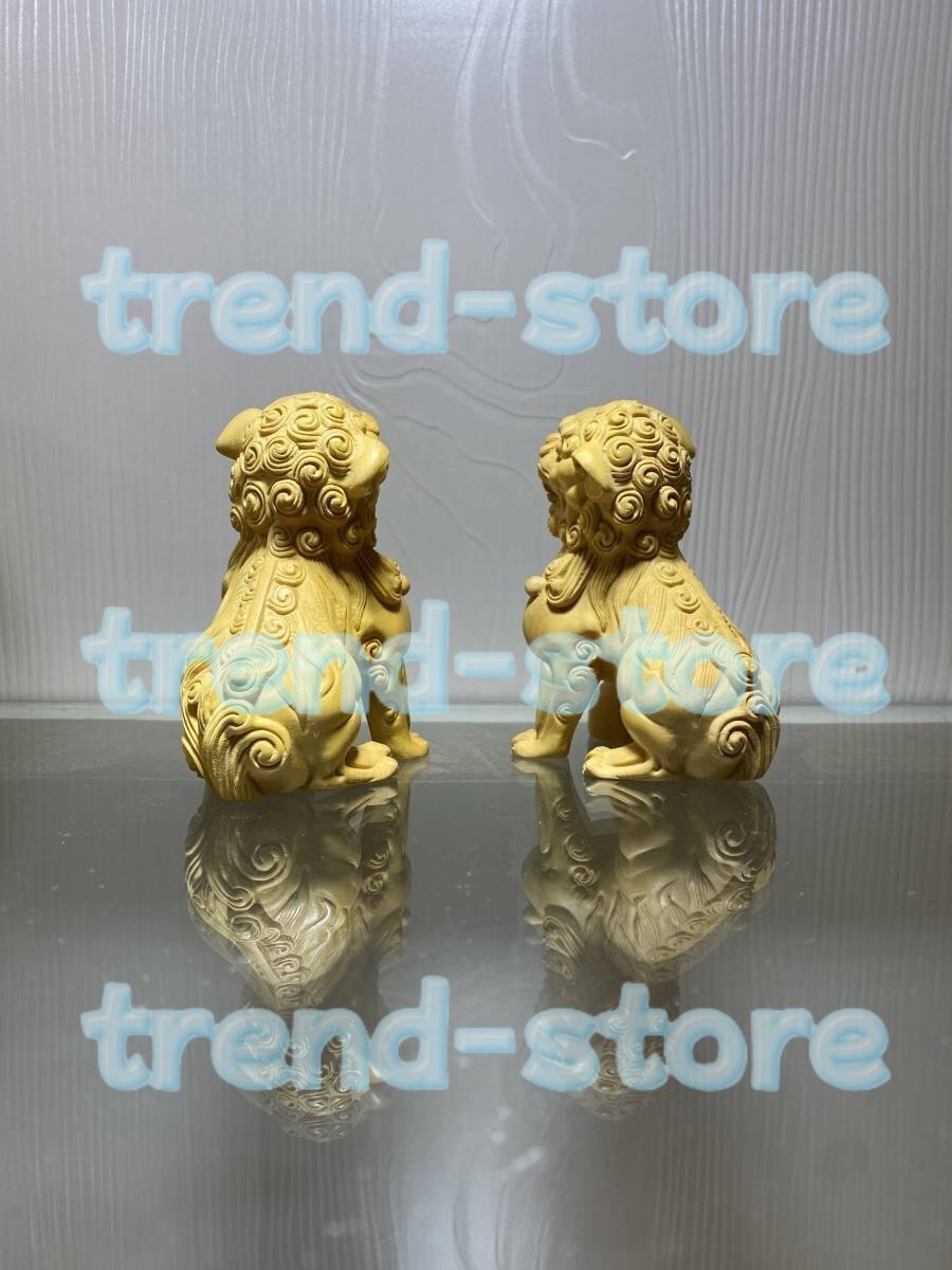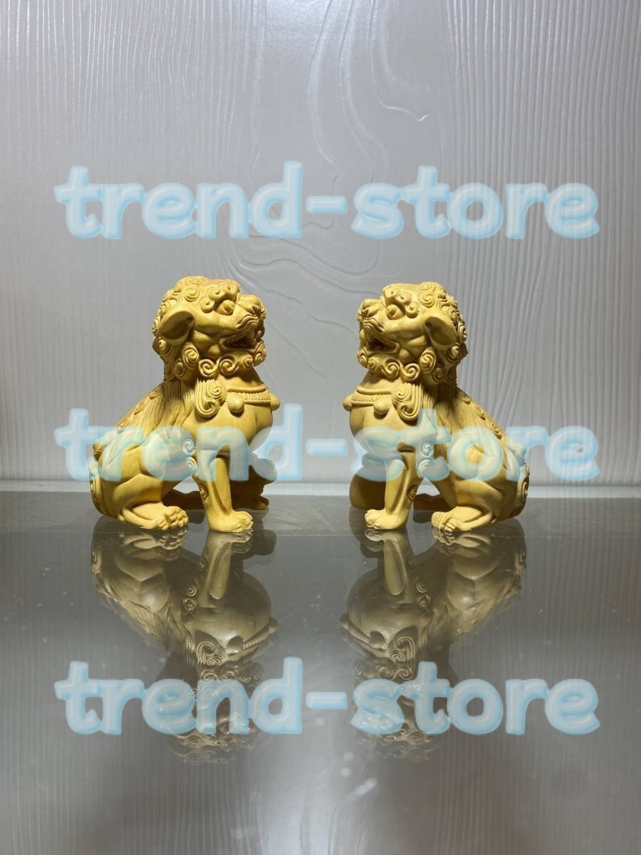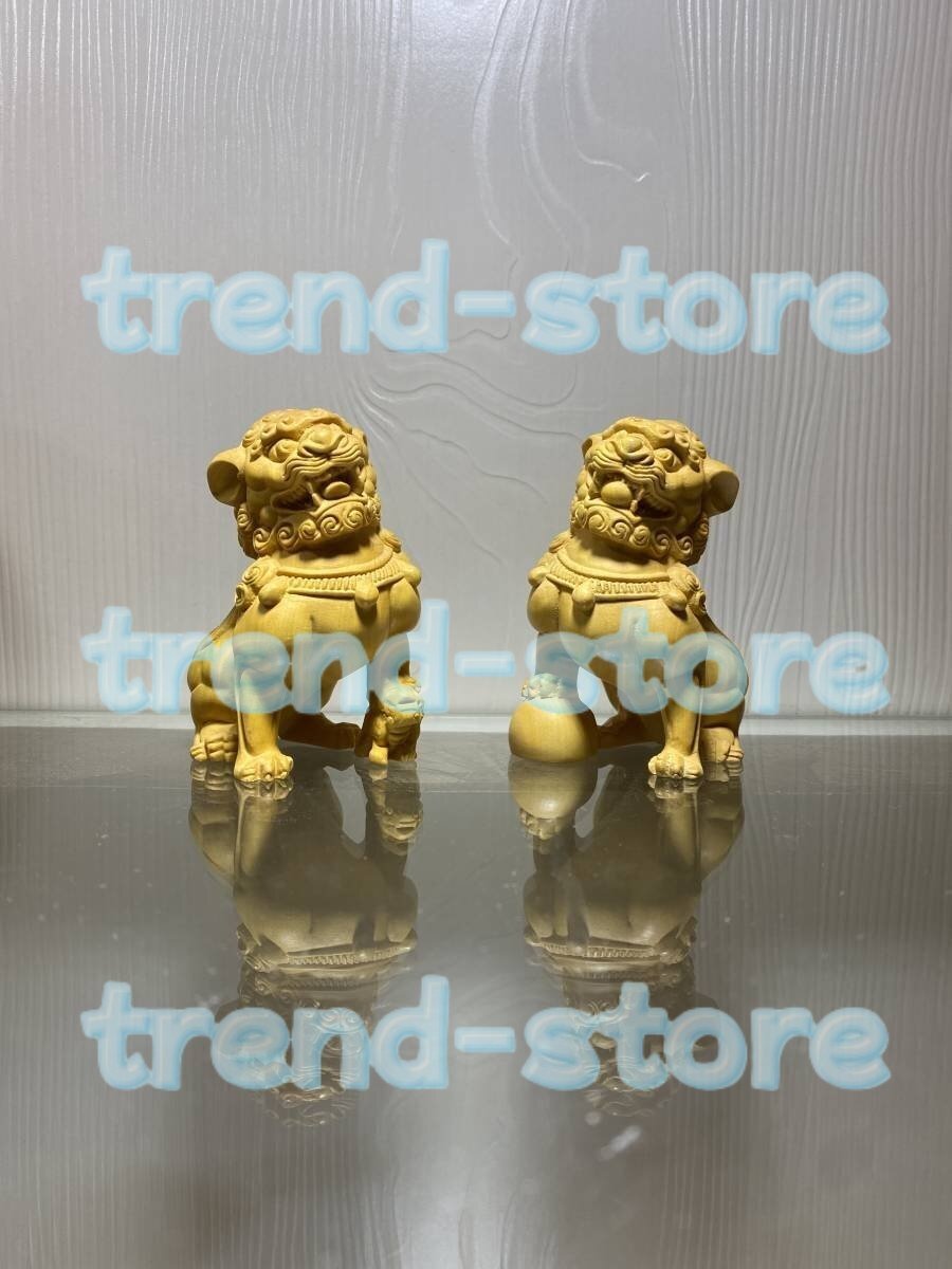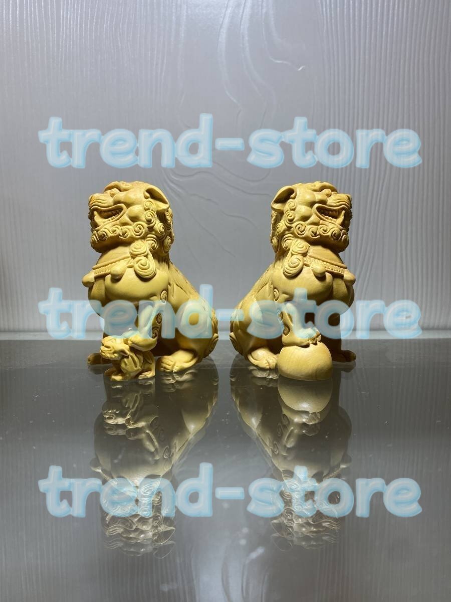 一式 獅子 置物 ライオン 緑起物 飾り置物 木彫 祈る 招福 精密彫刻 工芸品 美術品
