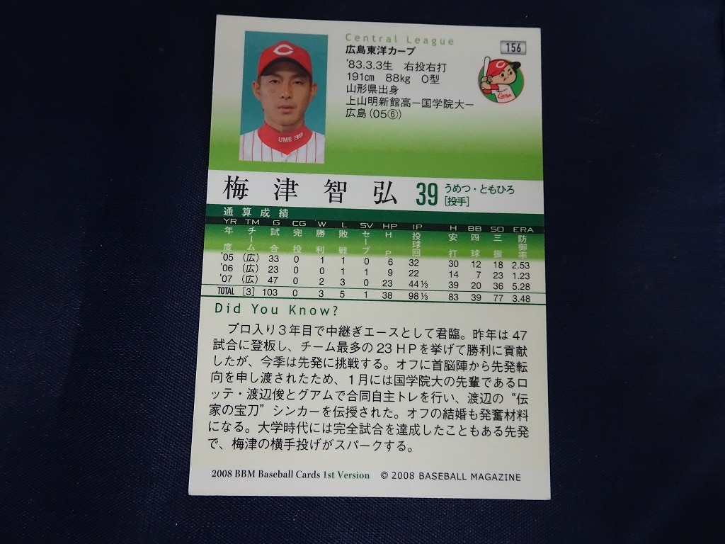 KMC1533★ベースボールマガジン BBM 156 梅津智弘 広島東洋カープ BASEBALL MAGAZINE 2008 | ||