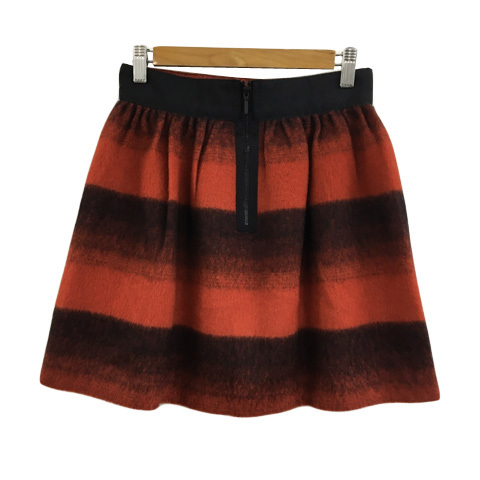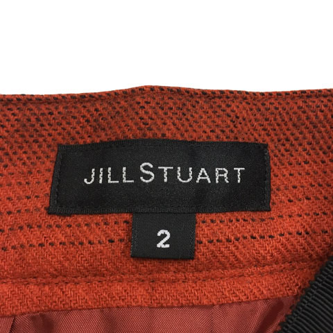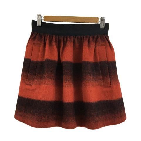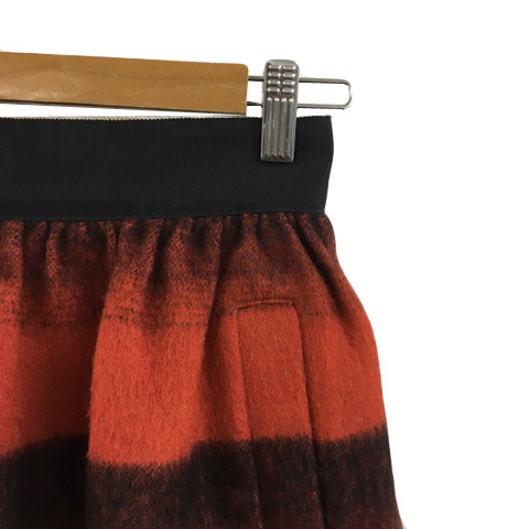 ジルスチュアート JILL STUART スカート フレア ギャザー ミニ ウール ボーダー 2 赤 黒 レッド ブラック レディース