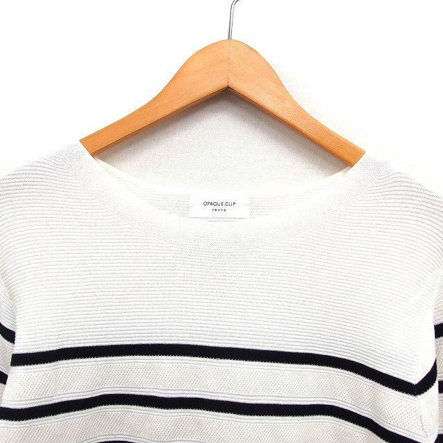 オペークドットクリップ OPAQUE.CLIP ニット カットソー ロングテール ボーダー コットン 綿 リブ ボートネック 長袖 L 白 ホワイト