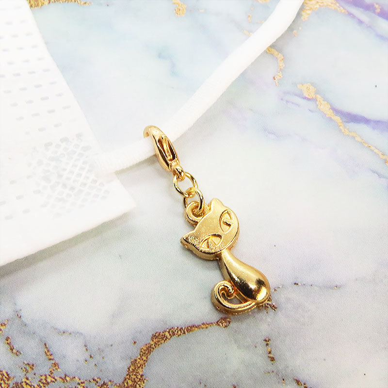 マットゴールドカラーの猫モチーフを使ったシンプルで華やかで落ち着いた輝きのワンポイントのマスクチャームです