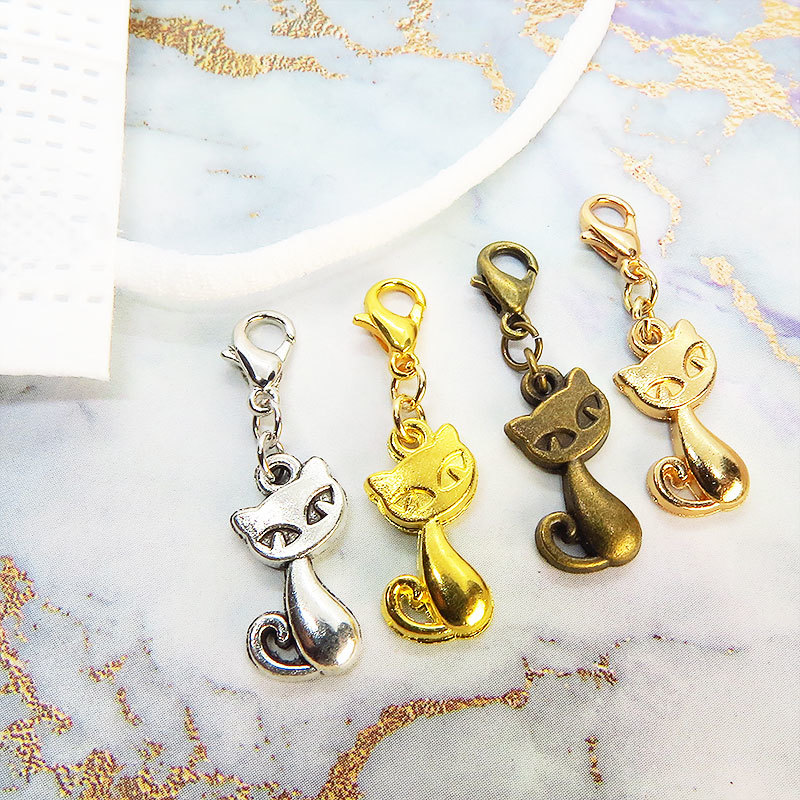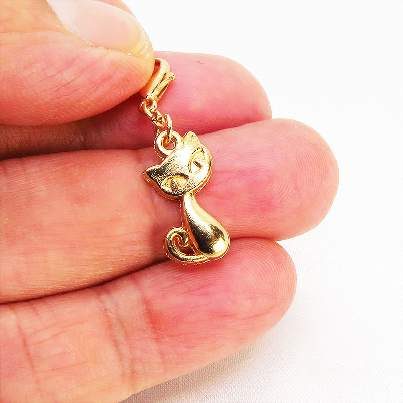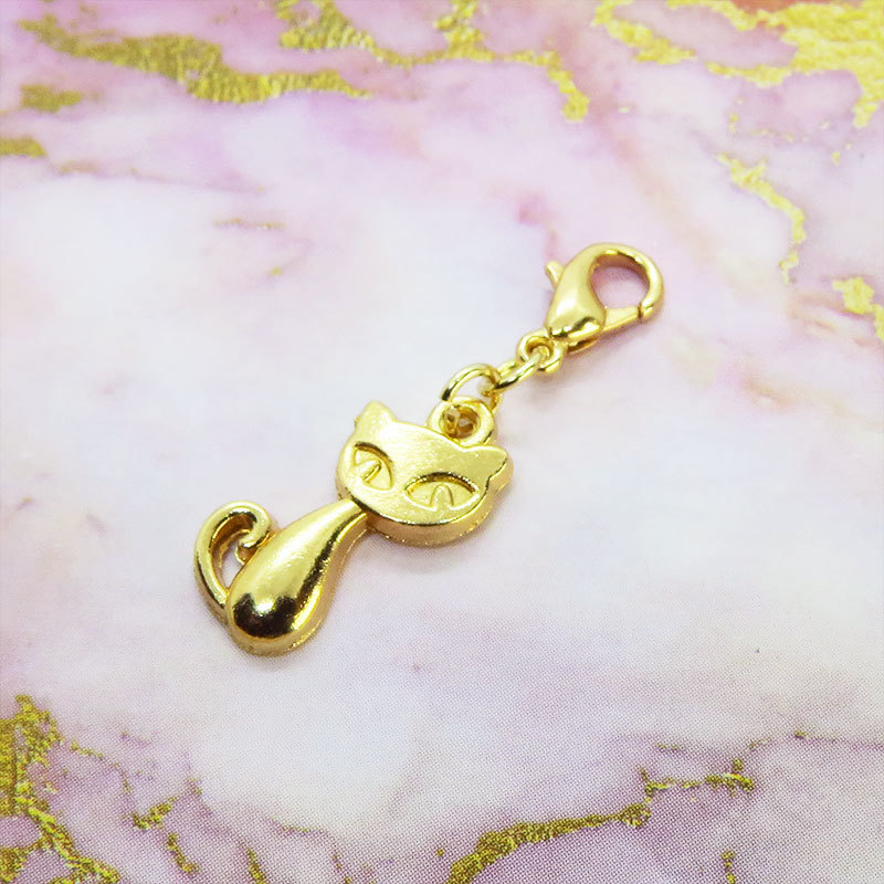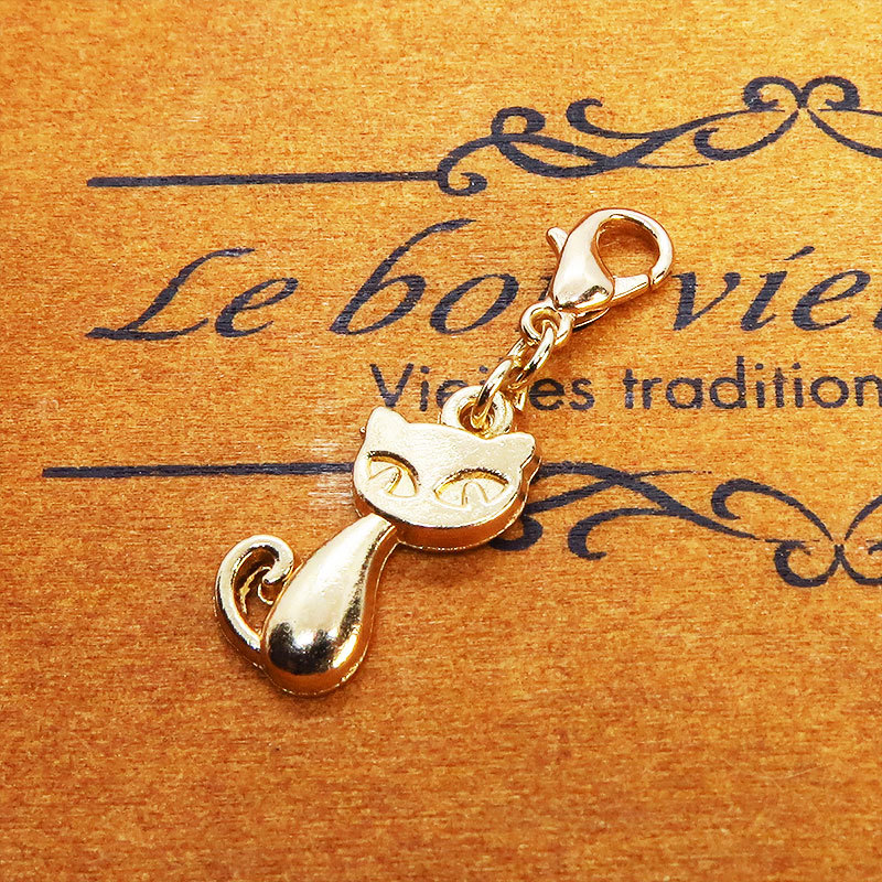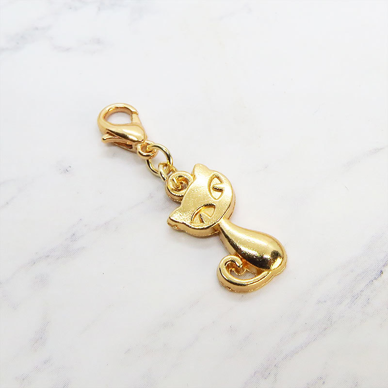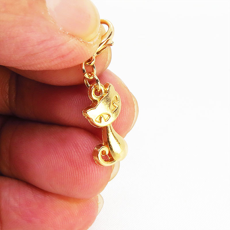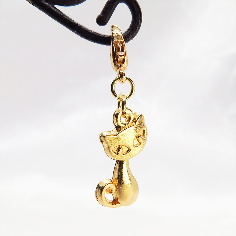 スマホ・マスクチャーム マットゴールドカラー 猫モチーフのシンプルでコンパクトなチャーム ジャックピン追加可