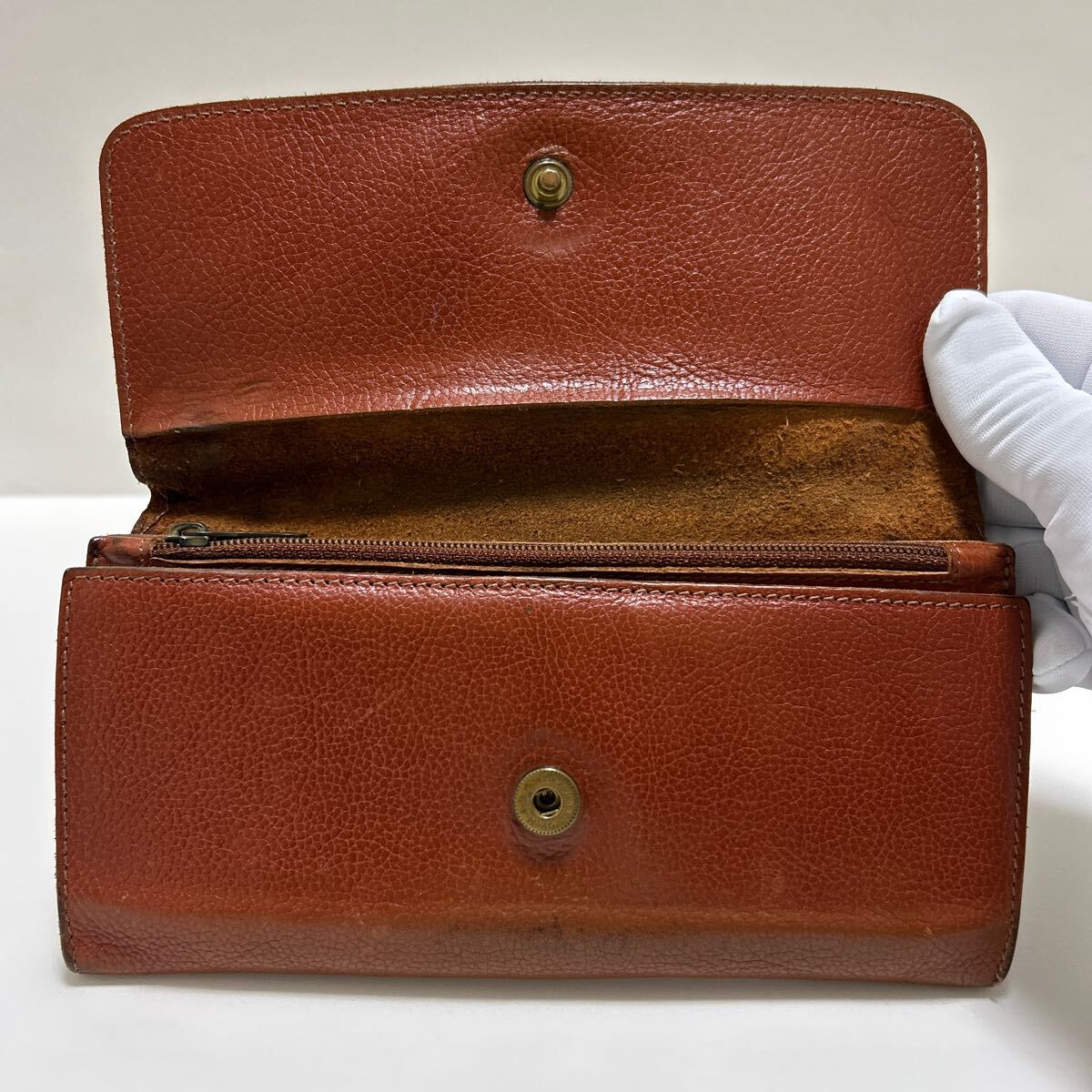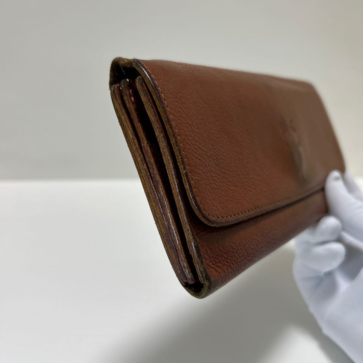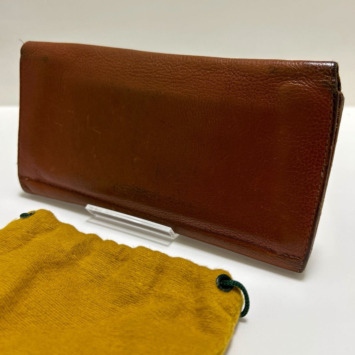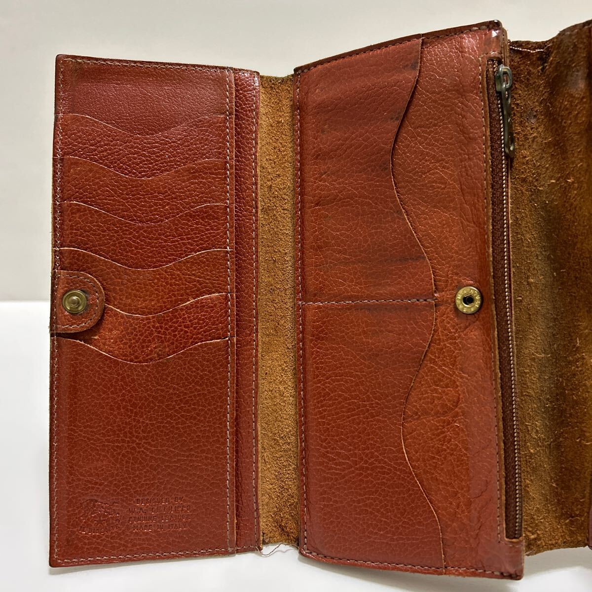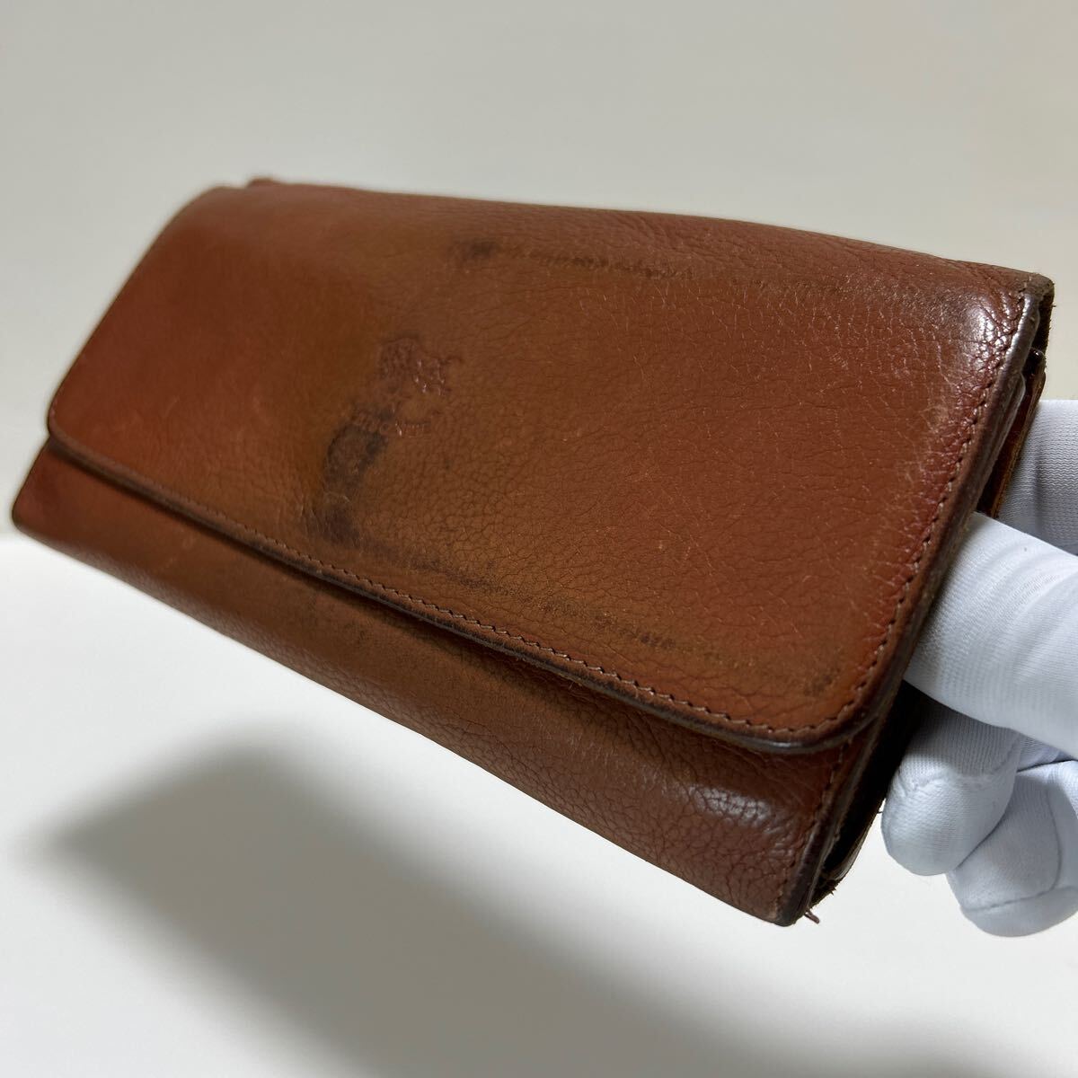 ★IL BISONTE イルビゾンテ かぶせ 長財布★ 三つ折り 小銭入れ有 ブラウン 袋付き イタリア製 正規品保証 【送料無料】0106-L1