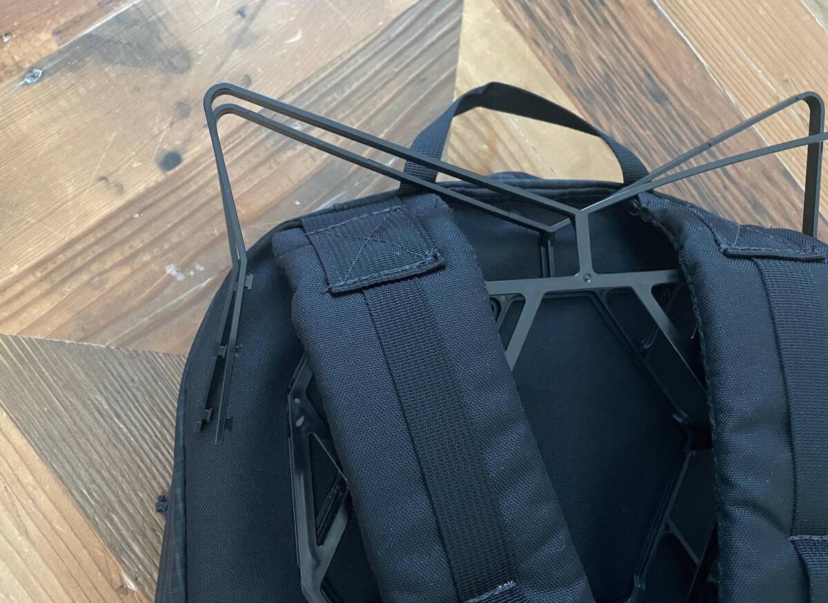 ・フレームの上部にあるループをバックパックのショルダーストラップに通します。(補足画像7)