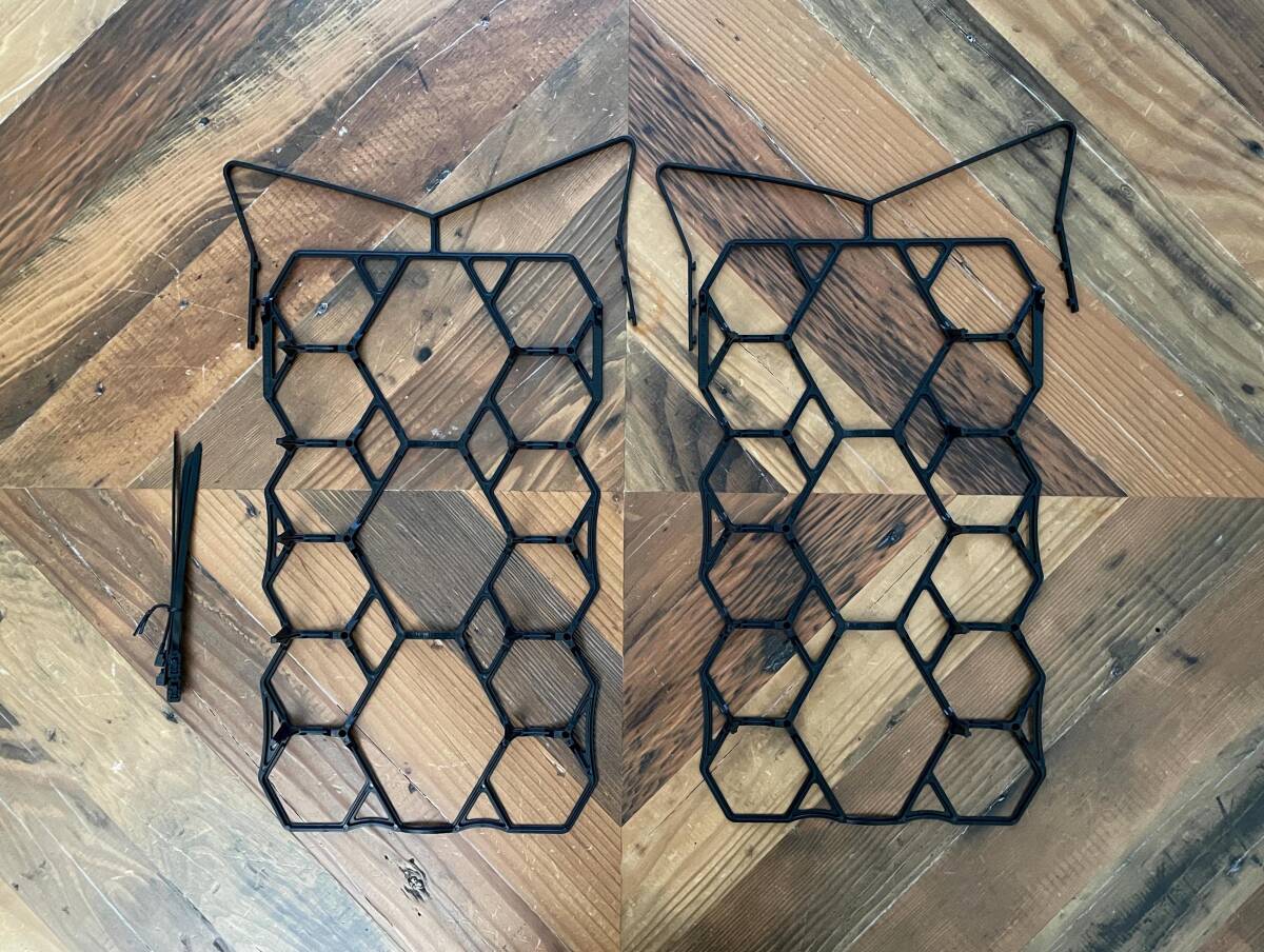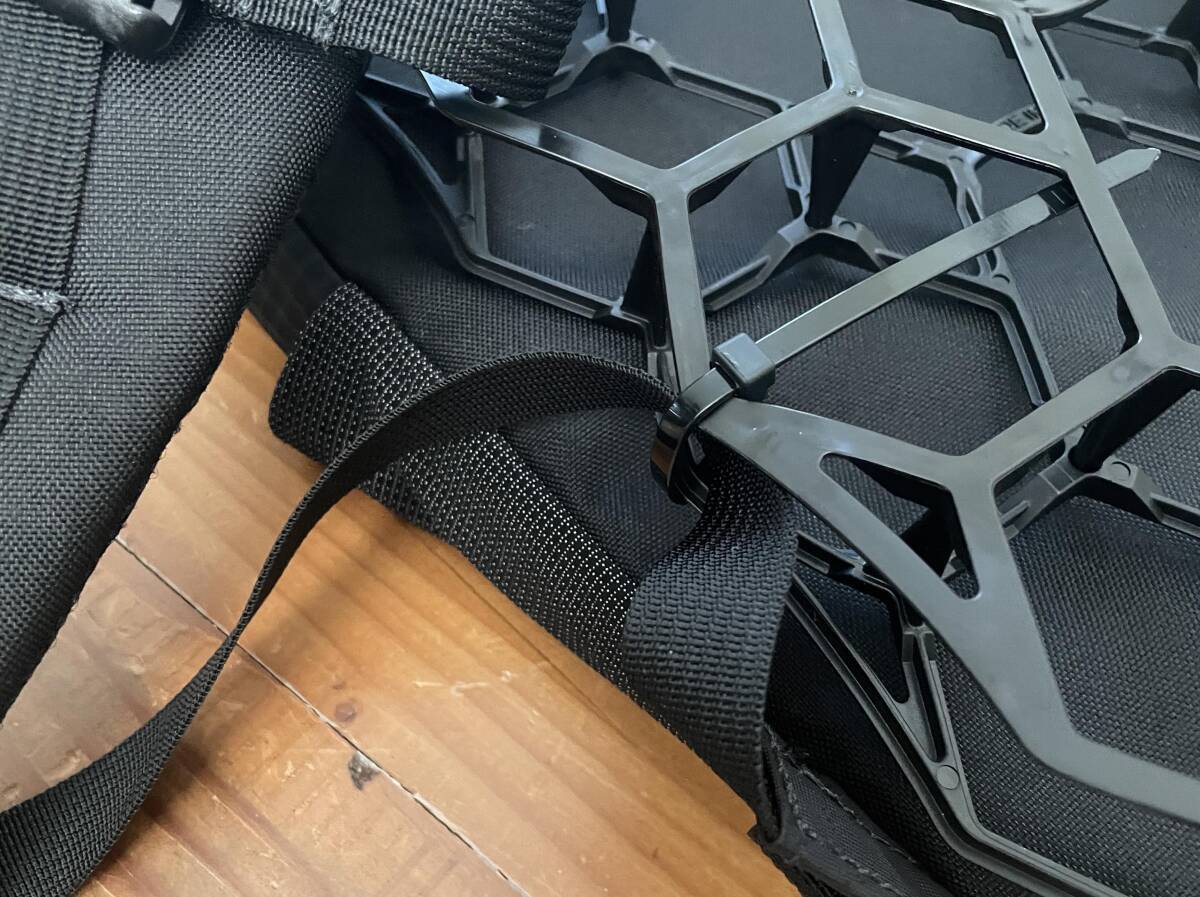 ・フレームの下部とショルダーストラップのベルトをタイラップで繋ぎます。