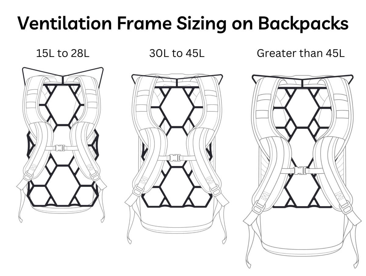 最大積載量は90kgもあり、ちょっとやそっとでは壊れませんでの45L以上のバックパックにも取り付けは可能ですがパックの形状によってベンチレーション機能が下がる場合があります。