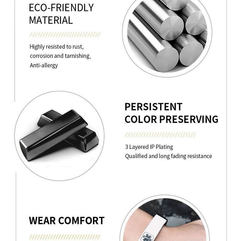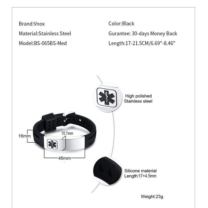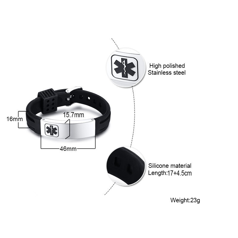 海外からの発送となりお届けに2週間程度頂きます。商品名ブレスレット メンズ レディース 無料刻印 IDブレスレット アジャスタブル シリコーン メディカル スポーツ キッズスペック金属の種類:ステンレス素材:シリコーンチェーンタイプ:リンクチェーンシェープ:ラウンドトグル留めゴールドベゼルセッティング幅:16mm長さ:17-21.5cm6.69-8.46デザイン:メディカルカラー:ブラック 黒タグ: ファインジュエリーズ finejewelrys 大人 おしゃれ かわいい かっこいい トレンド vnox 人気 アイテム 送料無料 ポイント消化 アクセサリー お洒落 オシャレ 可愛い カワイイ 10代 20代 30代 40代 50代 60代 70代 プチプラ プレゼント ギフト 彼氏 彼女 家族