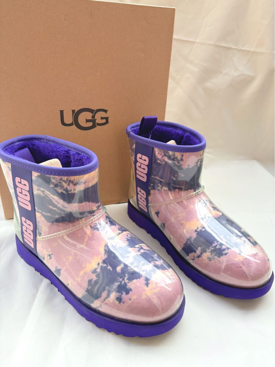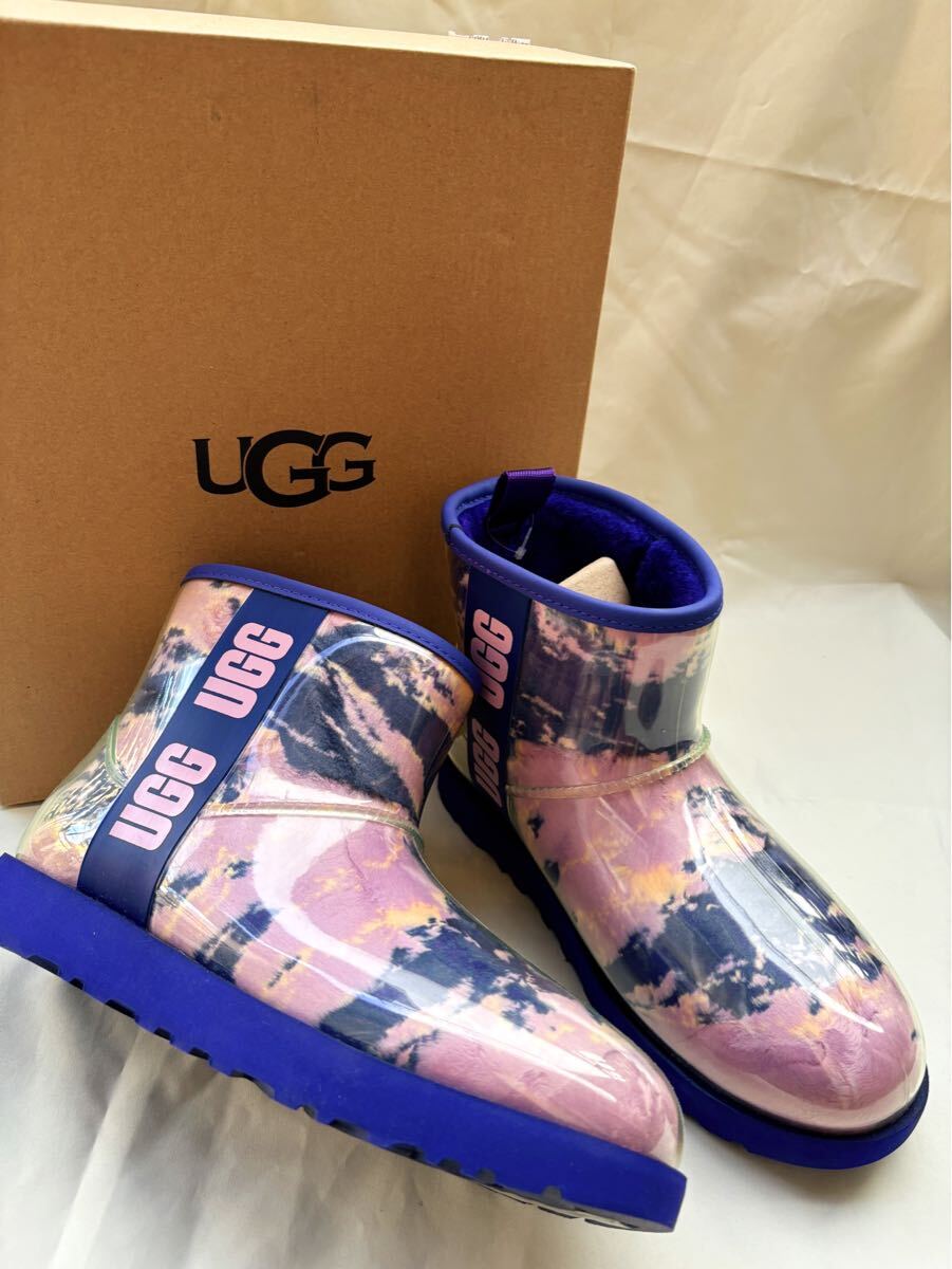 新品 UGG アグ★人気完売柄商品 W CLASSIC CLEAR MINI マーブル 8 25㎝ ブーツ ショート長靴