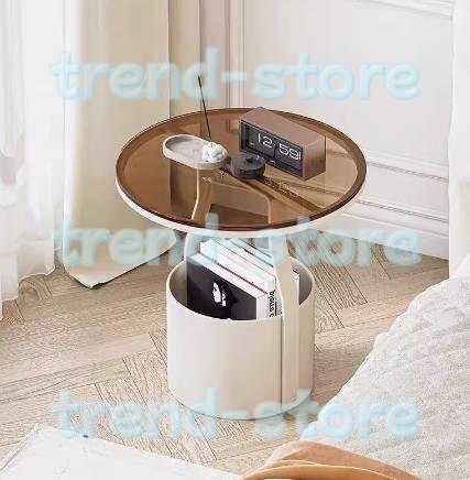 北欧風 丸型 テーブル ローテーブル ガラステーブル センターテーブル ガラス おしゃれ 収納付き コーヒーテーブル