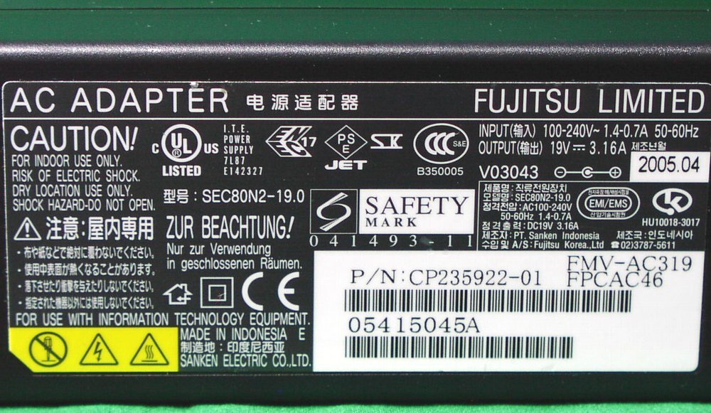 ■電源(めがねケーブル)送料無料条件。同日落札かつ、まとめ取引申請。 ■プラグはセンター(+)、外径5.5mm内径2.1mm、センターピン無し。(写真参照) ■富士通ノートPC用ACアダプターですが、汎用性が高く各社のノートPCと適合します。 ■出荷前に通電確認行っております。初期不良保障致します。 ■中古品です、クリーニングはしてありますが、多少の傷、汚れはご容赦。 |