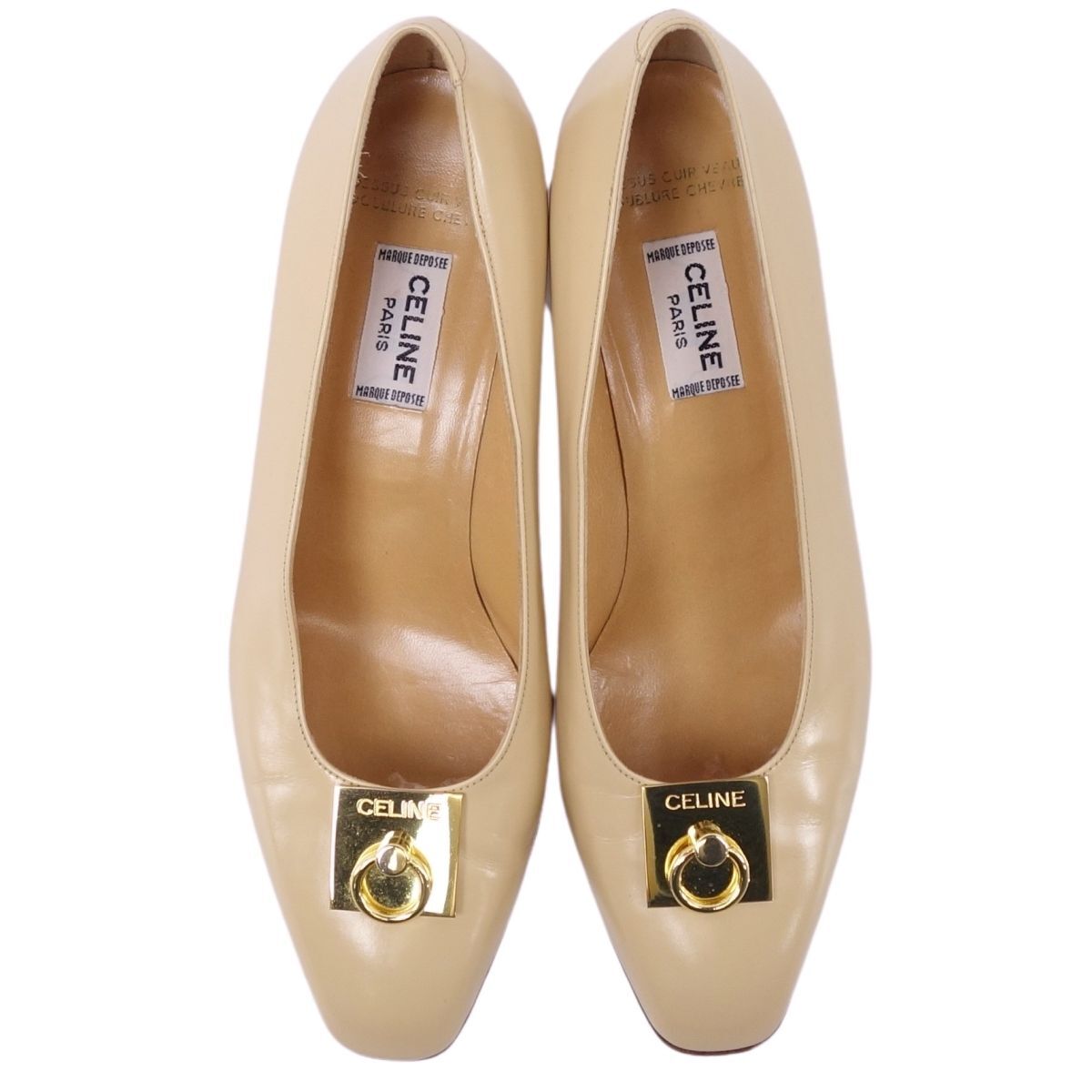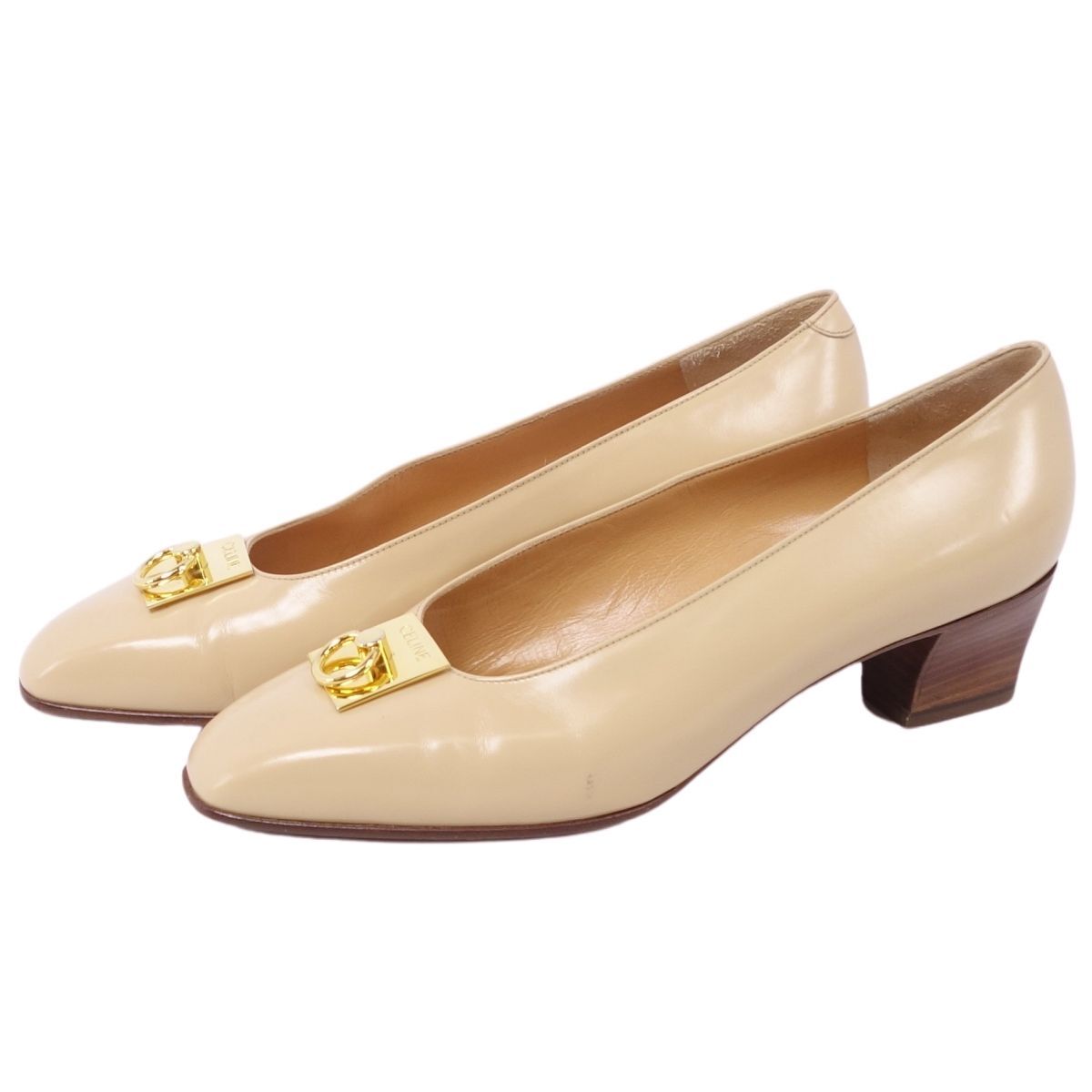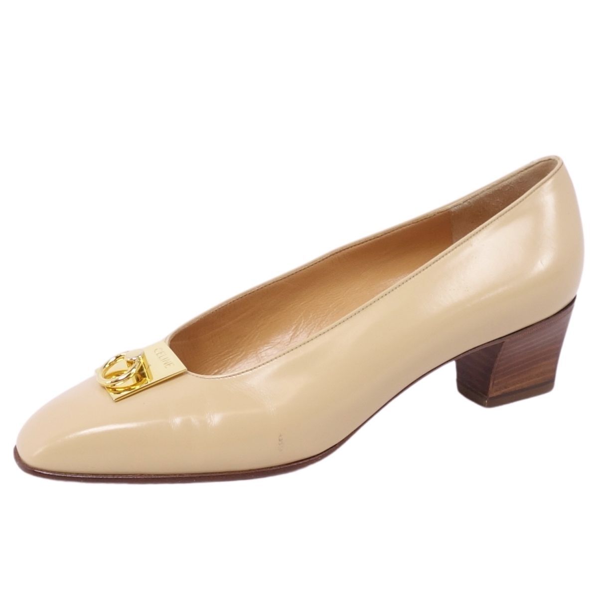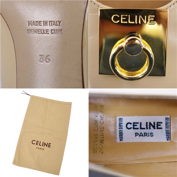 美品 Vintage セリーヌ CELINE パンプス ヒール レザー 本革 ゴールド金具 イタリア シューズ レディース 36(23cm相当) |