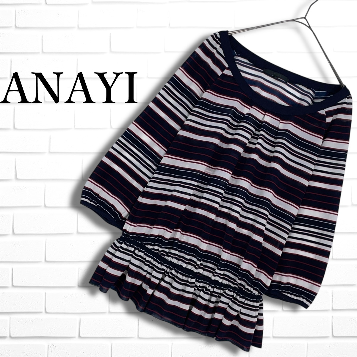 ◆良品◆ ANAYI アナイ ボーダー プルオーバー トップス カットソー 紺 白 赤 レディース 38 M ◆日本製 送料無料◆ 0125A