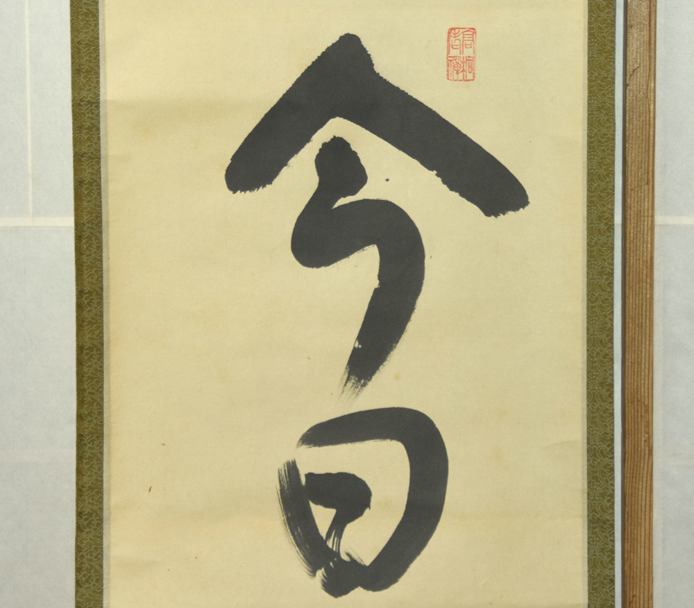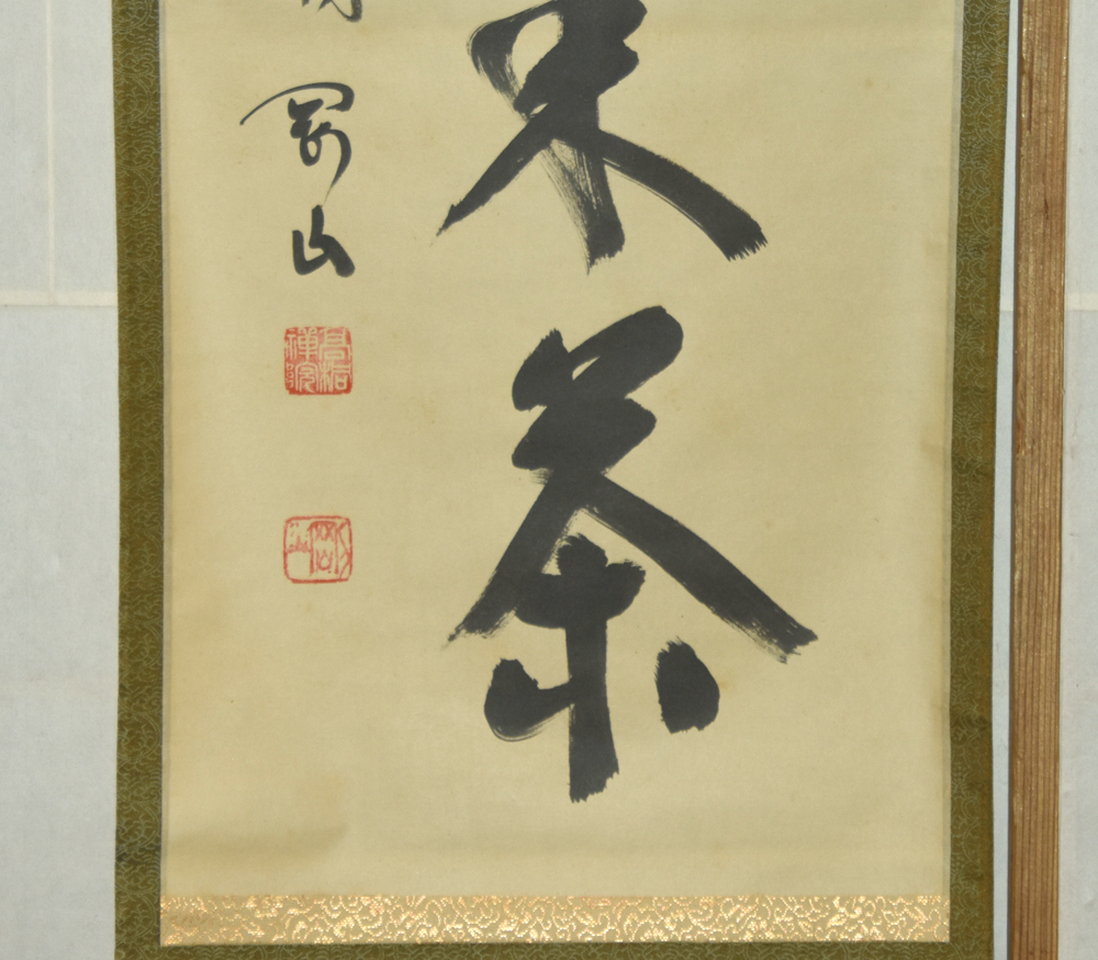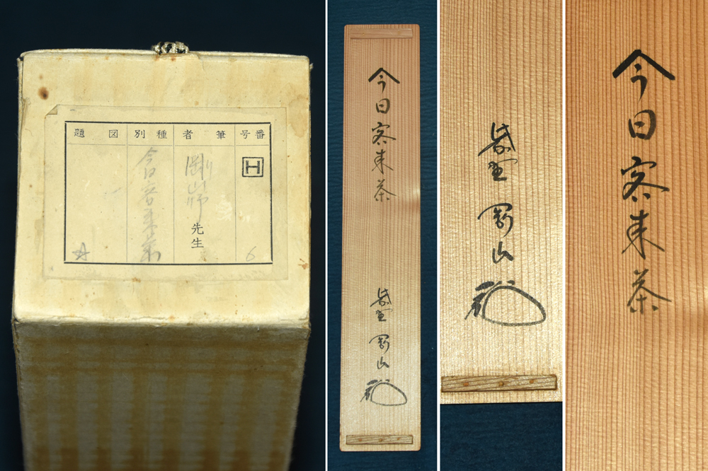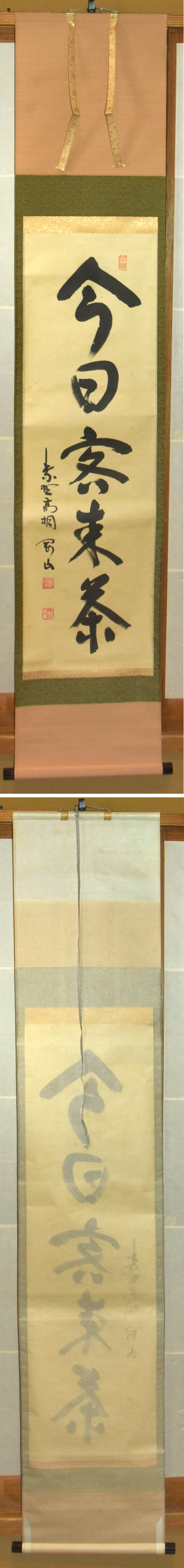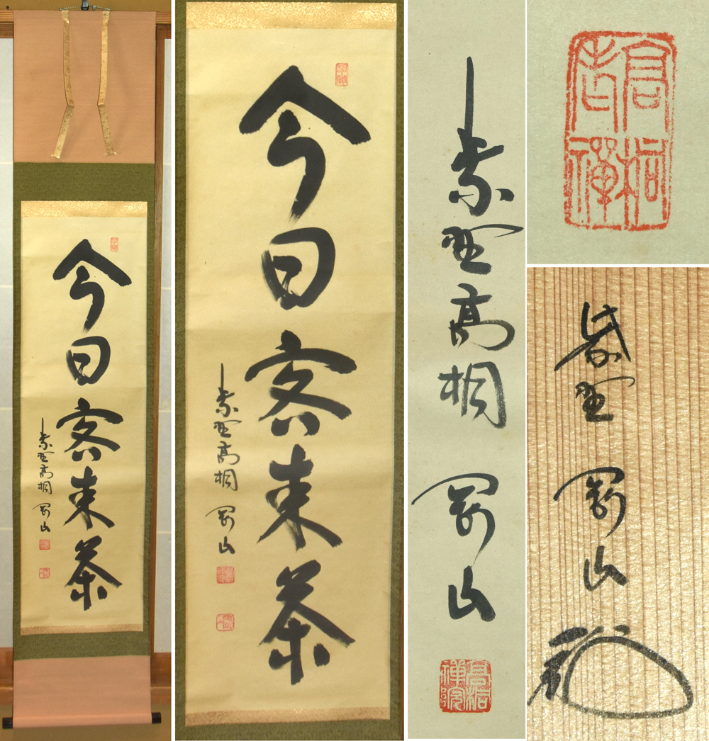 【真作】松長剛山「今日客来茶」一行書 紙本 肉筆 掛軸 共箱 大徳寺塔頭 高桐院住職 茶掛 墨蹟 禅語 書画 古美術 骨董 |