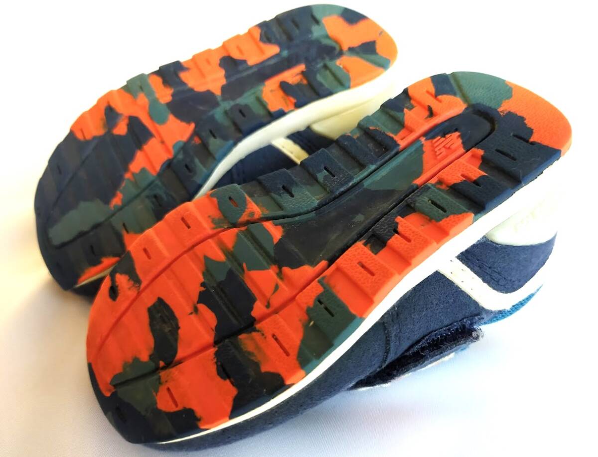 軽量で屈曲性に優れたクッションソールと、脱ぎ履きしやすいよう大きく開くマジックテープのアッパーが