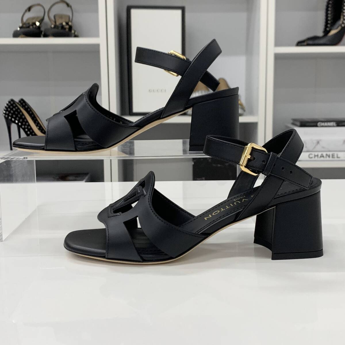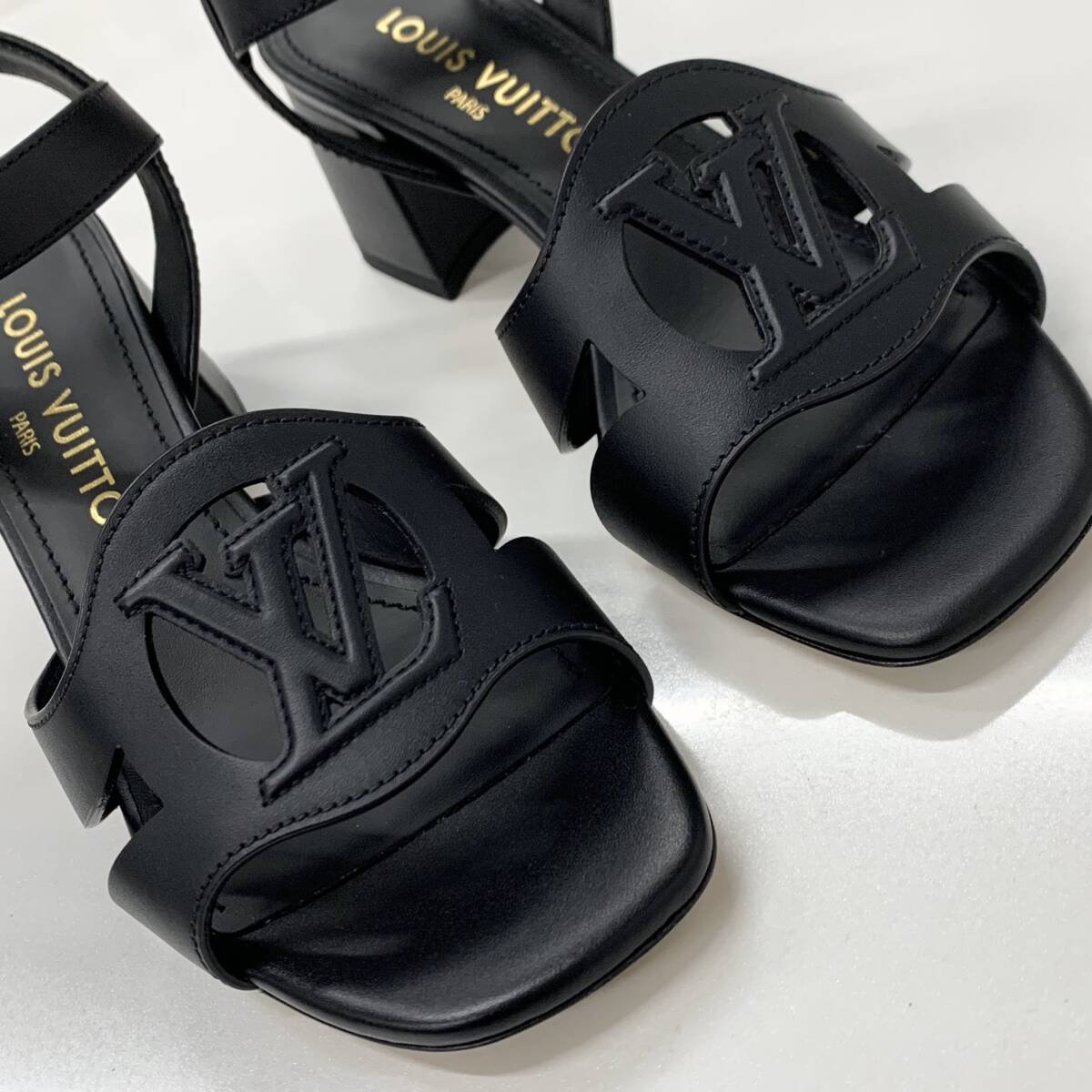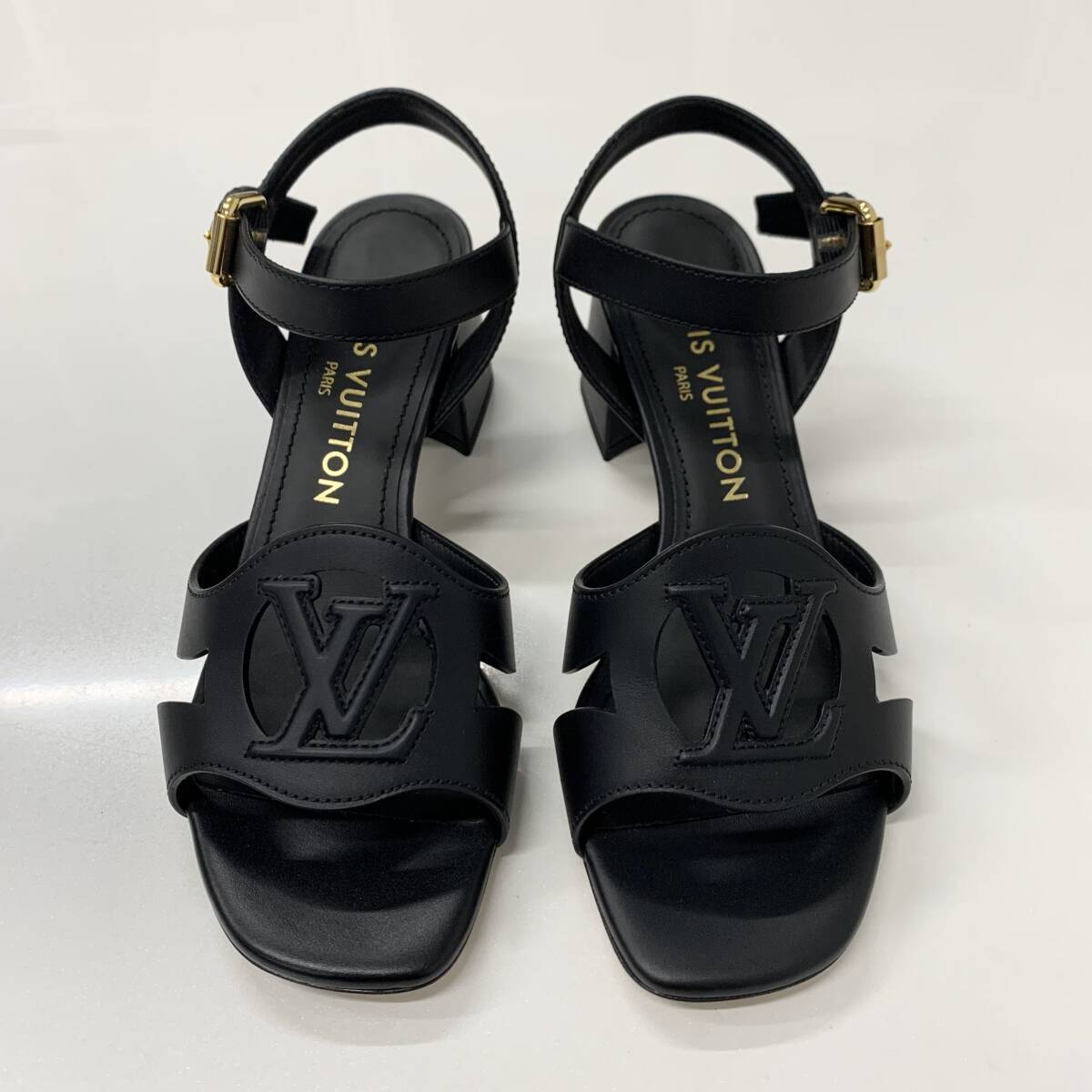 ヴィトン イソラライン レザー ストラップ サンダル ロゴ ブラック