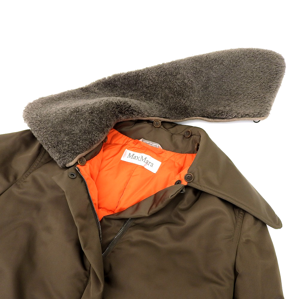 | 超美品 マックスマーラ 最高級 1stライン 襟ムートンファー 袖カシミア混リブニット グース ダウン ロング コート 38 レディース Mサイズ |