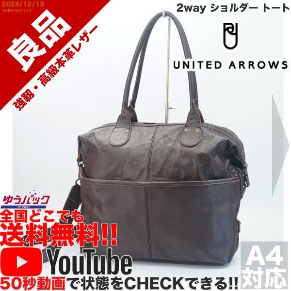 送料無料 即決 YouTube動画アリ 定価18000円 良品 ユナイテッドアローズ UNITED ARROWS 2way ショルダー トート レザー バッグ