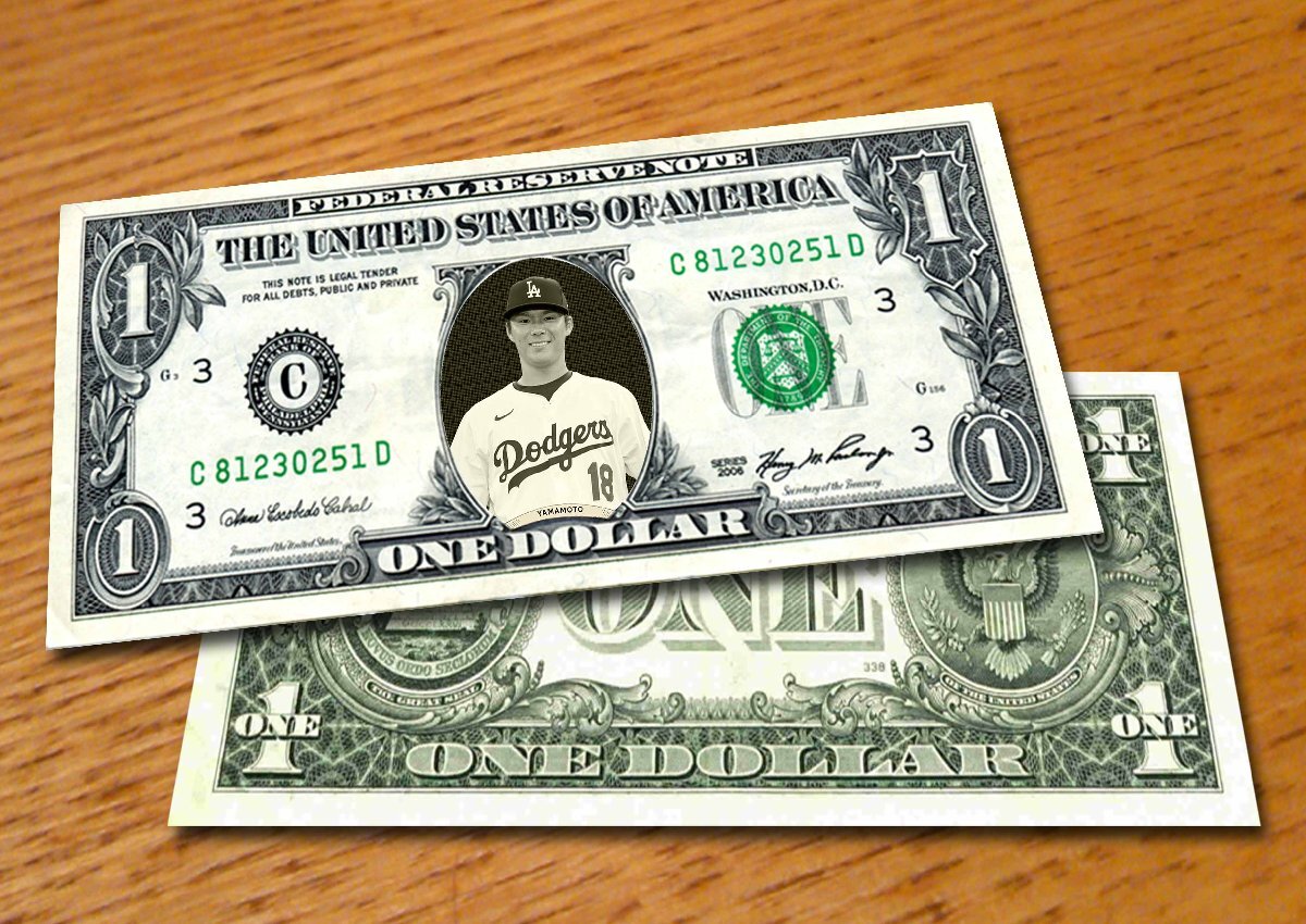 ロサンゼルス・ドジャース プロ野球選手【 山本由伸 】の本物の1ドル札 になります!★