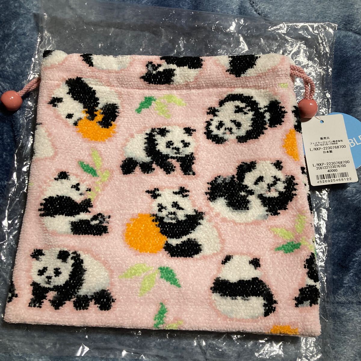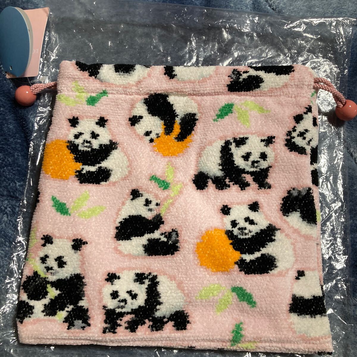 かわいらしいパンダがたくさんの巾着ポーチ。