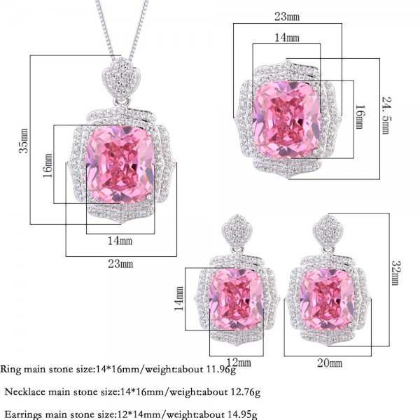 女性用ピンククォーツジュエリーセット(ネックレス、リング、ピアス)、結婚披露宴のファインジュエリー