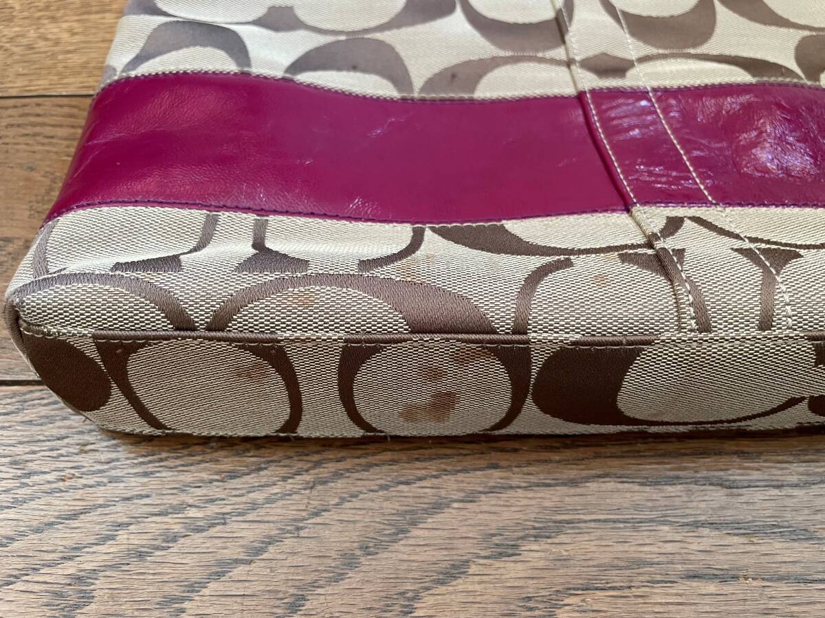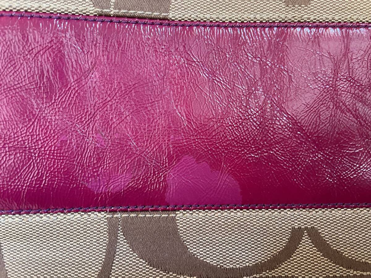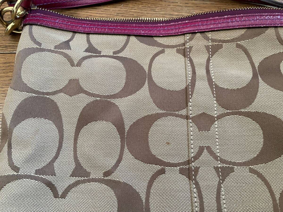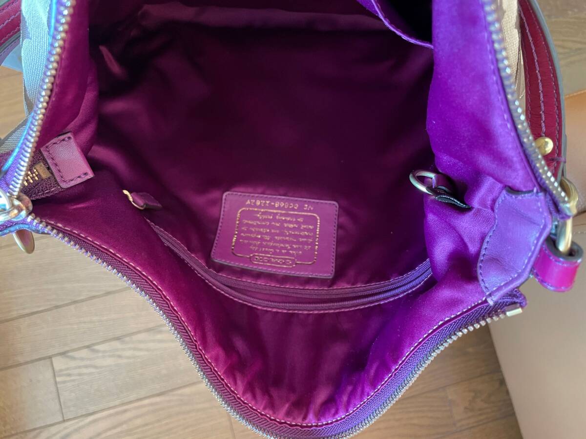 中古 COACHコーチ ショルダー 12824 カーキ/紫 シグネチャー