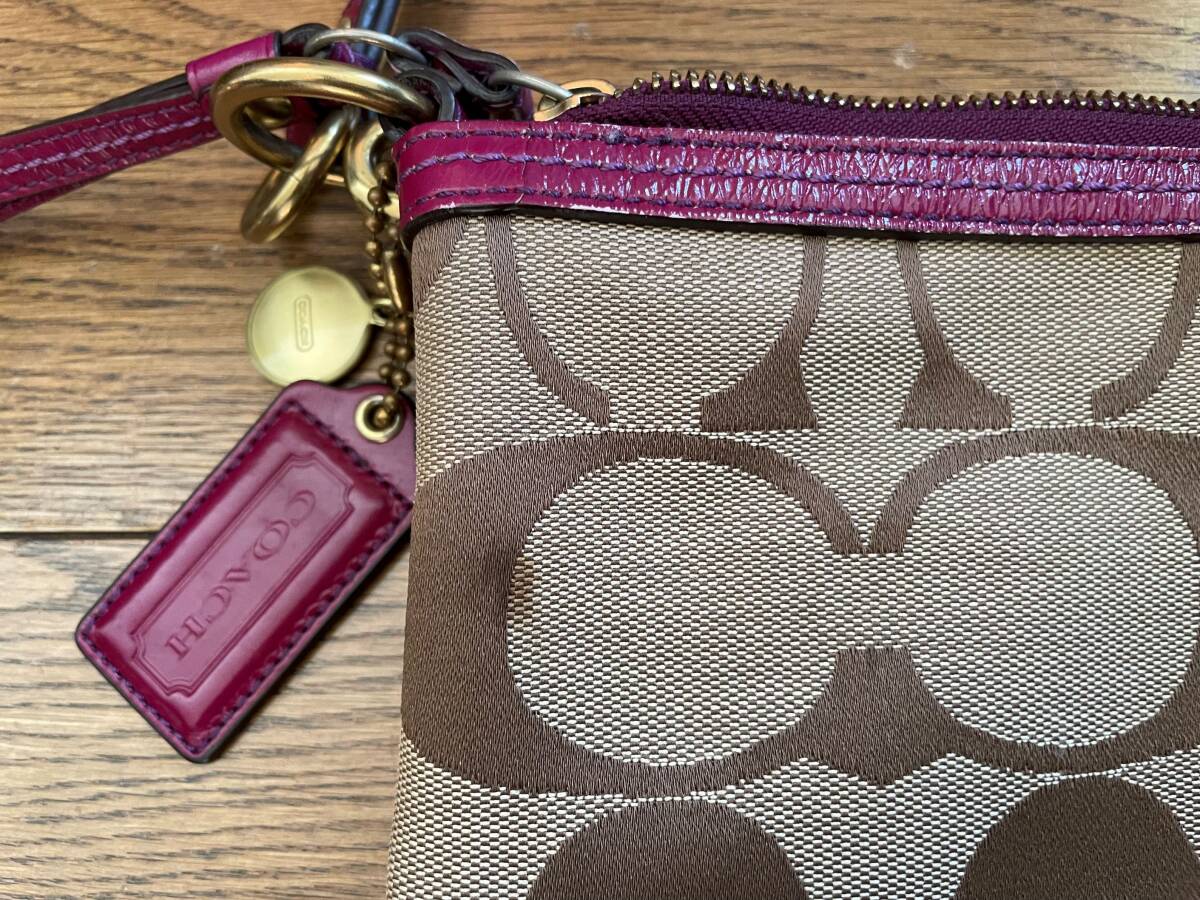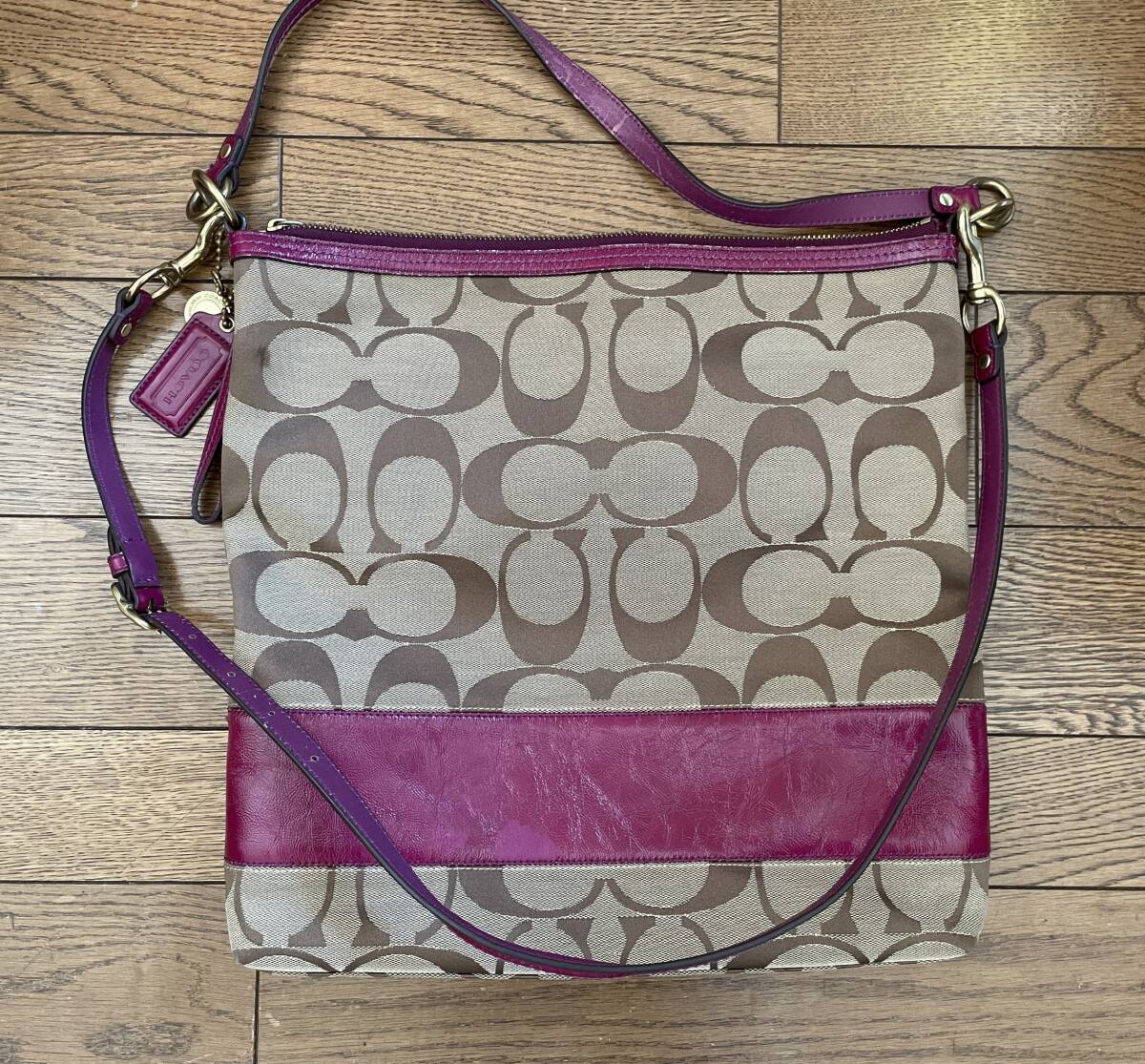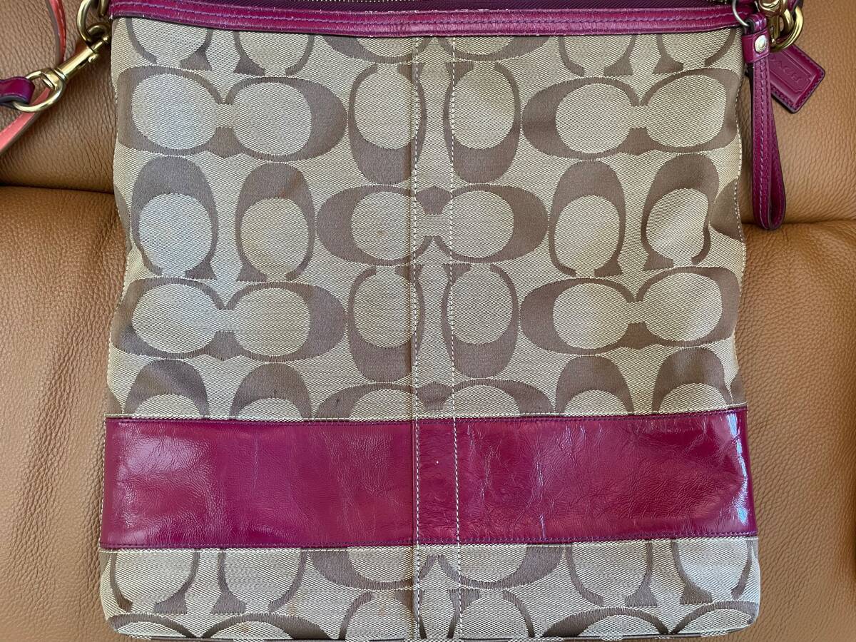 中古 COACHコーチ ショルダー 12824 カーキ/紫 シグネチャー