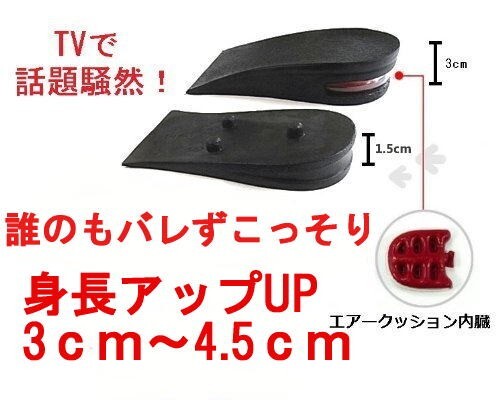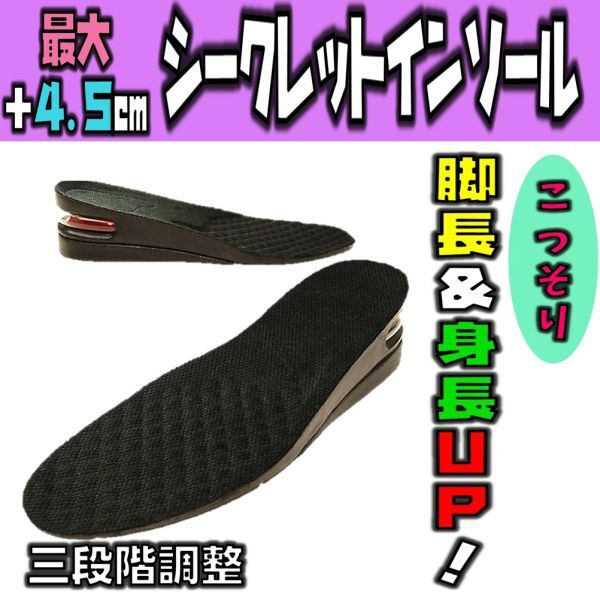 履くだけ 4.5cm 足が長くなる 2段  シークレット インソール 2段になっているので 3cm 4.5cm お好みの高さに 調整 可能