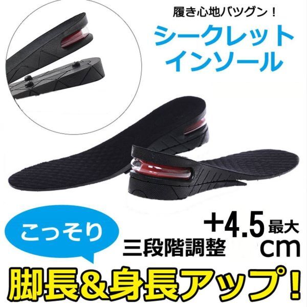 履くだけ 4.5cm 足が長くなる 2段 シークレット インソール 2段になっているので 3cm 4.5cm お好みの高さに 調整 可能