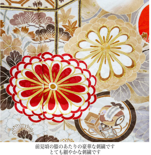 金こま刺繍は立体感があり、一層の豪華さを醸し出します。