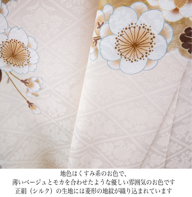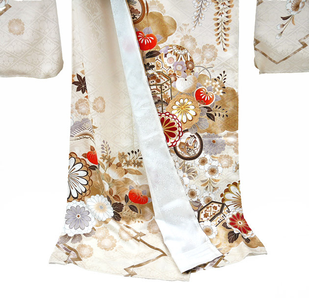 八掛(裾周りの裏地):正絹(絹100%)白色 桜の地紋