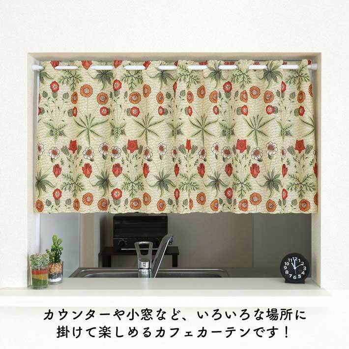 愛され続けるウィリアムモリスのモダンなデザインをカフェカーテンにしました。