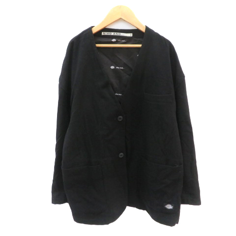 ニコアンド Niko and.. ノーカラージャケット ミドル丈 4 黒 ブラック /YK21 レディース
