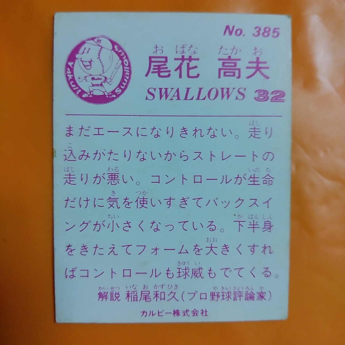 1983カルビー野球カード№385尾花高夫(ヤクルト)