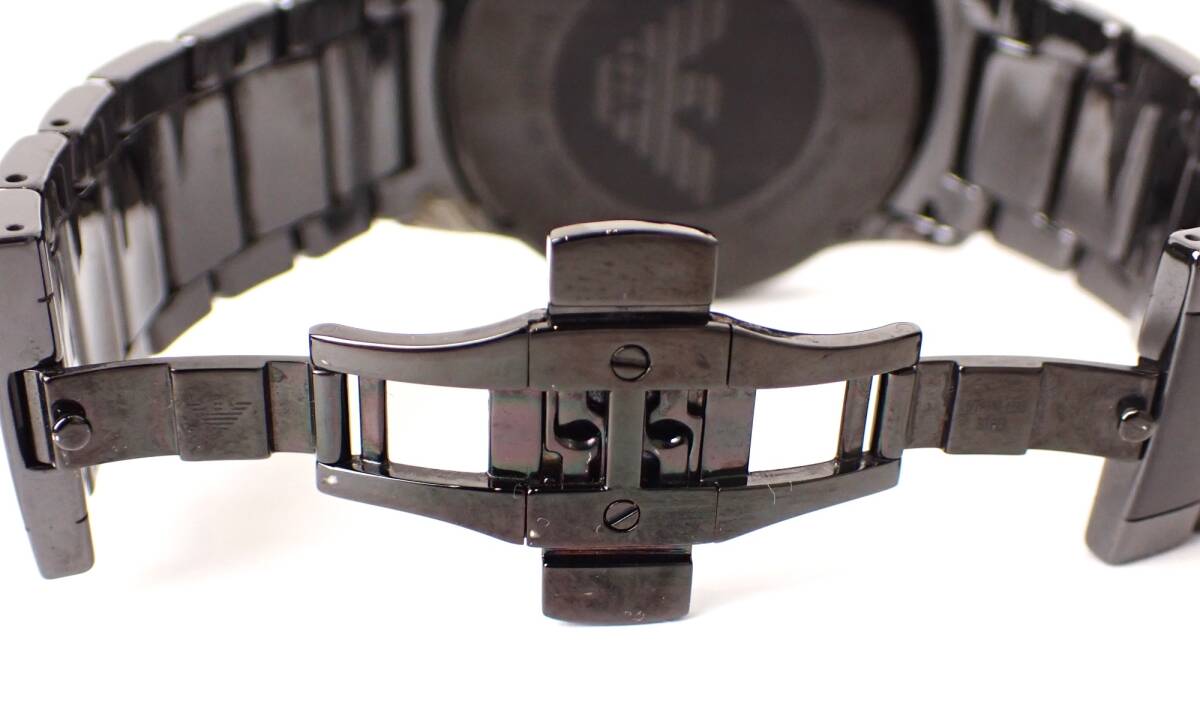 コメント | EMPORIO ARMANI(エンポリオアルマーニ)のクロノグラフ AR-1451は、スタイリッシュで現代的なデザインが特徴の腕時計です。セラミック素材を使用したこのモデルは、軽量でありながら頑丈な作りを持ち、着け心地の良さと耐久性を兼備しています。セラミックの美しい艶出し仕上げは、エレガントで洗練された印象を与え、どんな装いにも合わせやすいデザインです。この時計には、クォーツ(QZ)ムーブメントが搭載されており、時間の正確さと取り扱いの簡便さを提供します。クロノグラフ機能は、時間管理をサポートするだけでなく、スポーティでダイナミックなスタイルを演出します。多機能性を備えたこのモデルは、ビジネスシーンやカジュアルな場面でも幅広く活用できるのが魅力です。AR-1451は、エンポリオアルマーニならではのデザイン美学が凝縮されたモデルで、ブランドのアイコニックなロゴが文字盤にあしらわれています。スタイル意識の高い方々にとって、そのアクセントとなるでしょう。ケース裏に抉れがございますので現状品とさせていただいております。その点以外の動作等は問題なく使えるお品になっております。 |