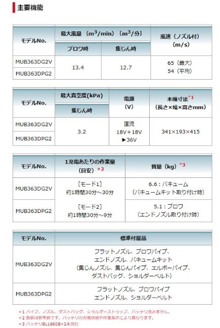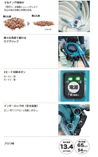 マキタ MUB363DZV (本体のみ+バキュームキット付) (バッテリ・充電器別売) 充電式ブロワ・集じん機 18V
