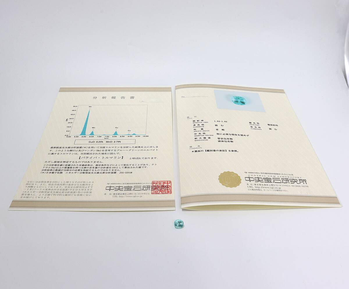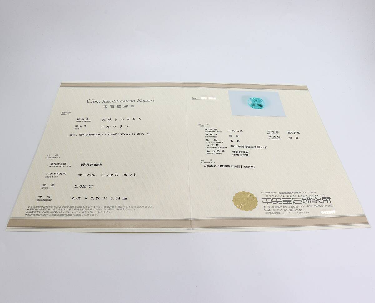 | S478 パライバトルマリン ルース 天然トルマリン 宝石 透明薄青緑色 2.045ct 宝石鑑別書あり 分析報告書あり アクセサリー | ||