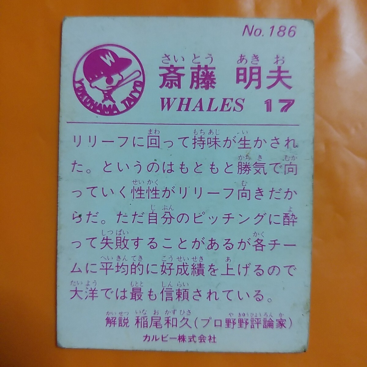 1983カルビー野球カード№186斎藤明夫(大洋)