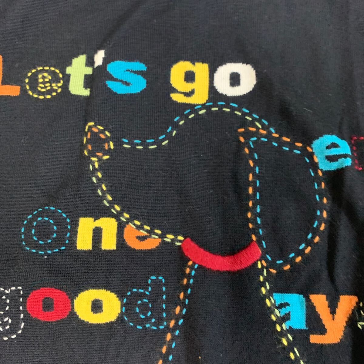 - デザイン: 犬のシルエットとカラフルな文字のプリント