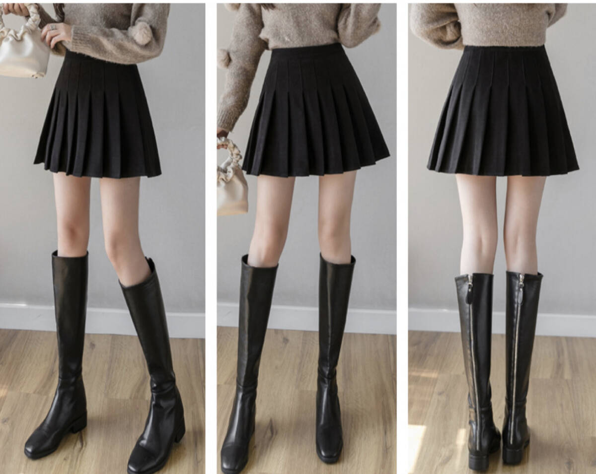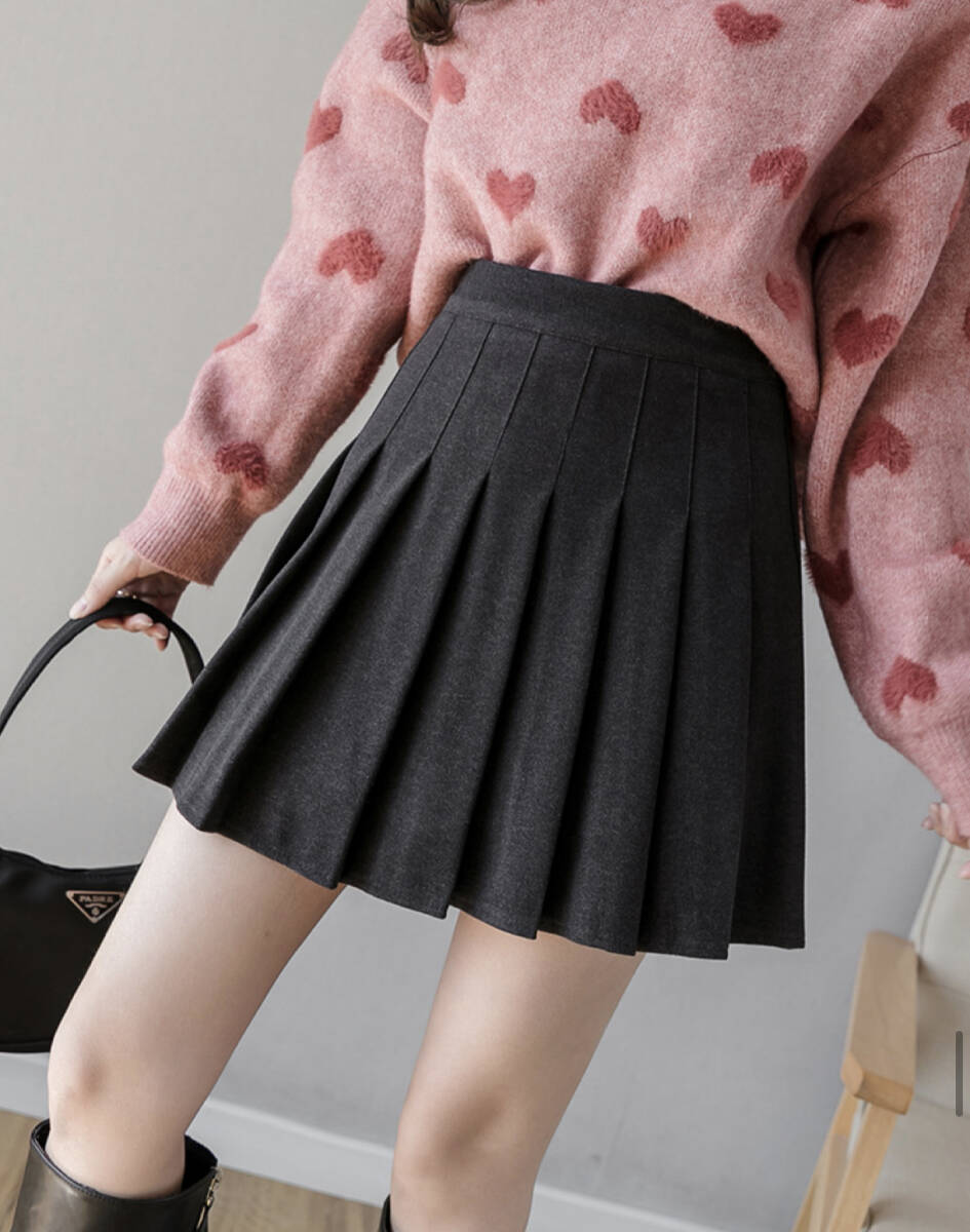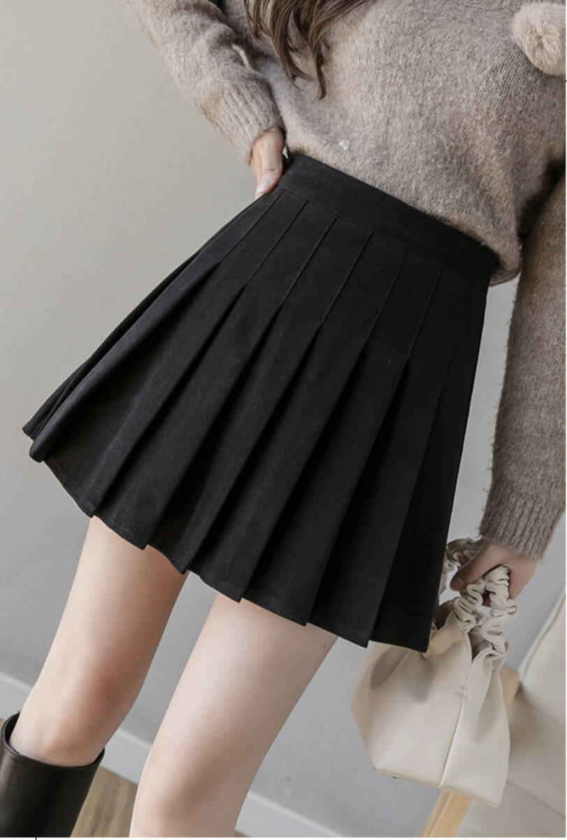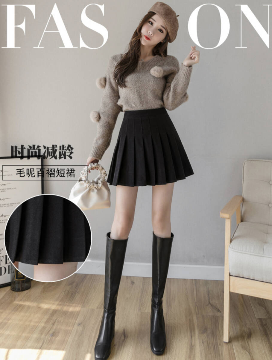 プリーツスカート ウール混  Aラインスカート カレッジ風